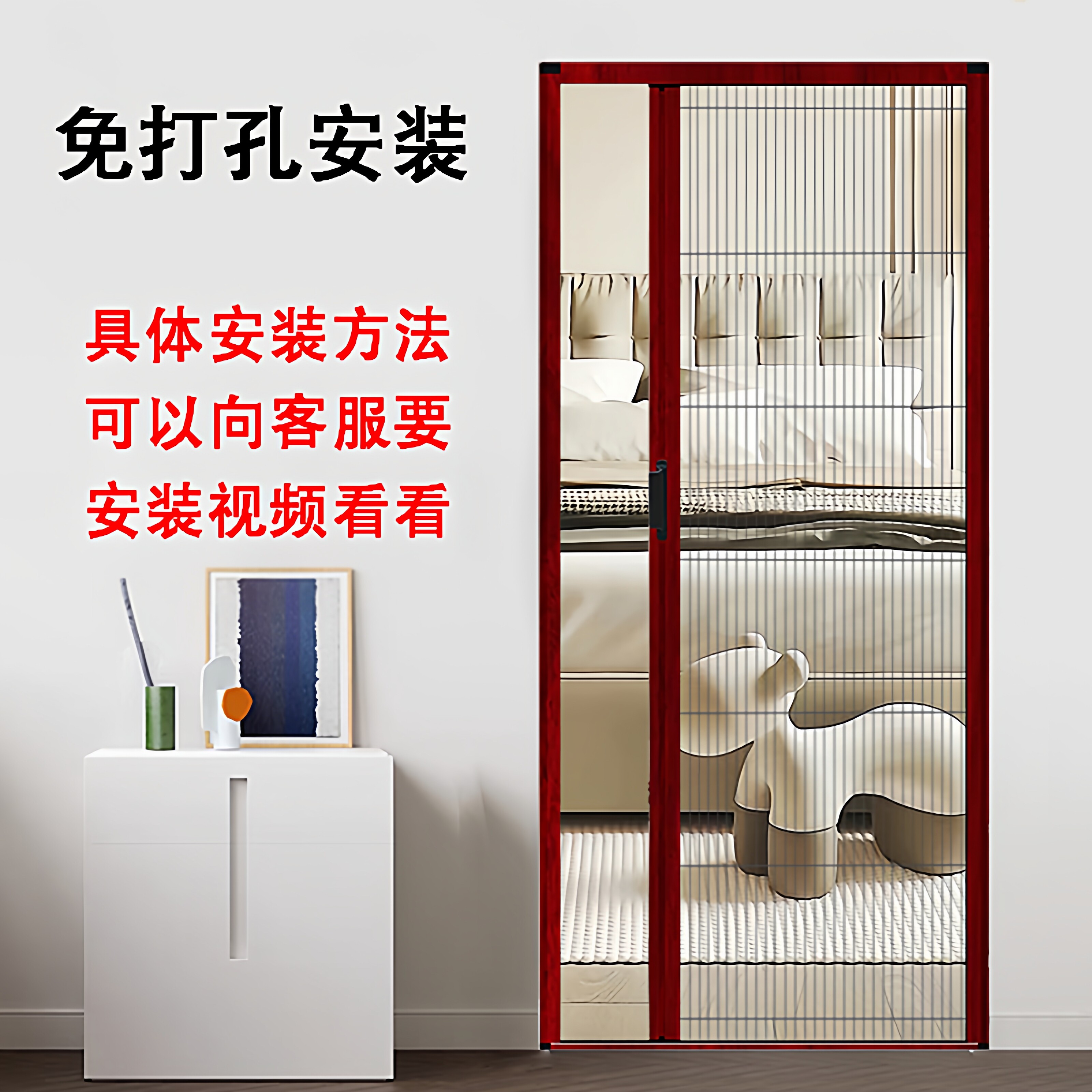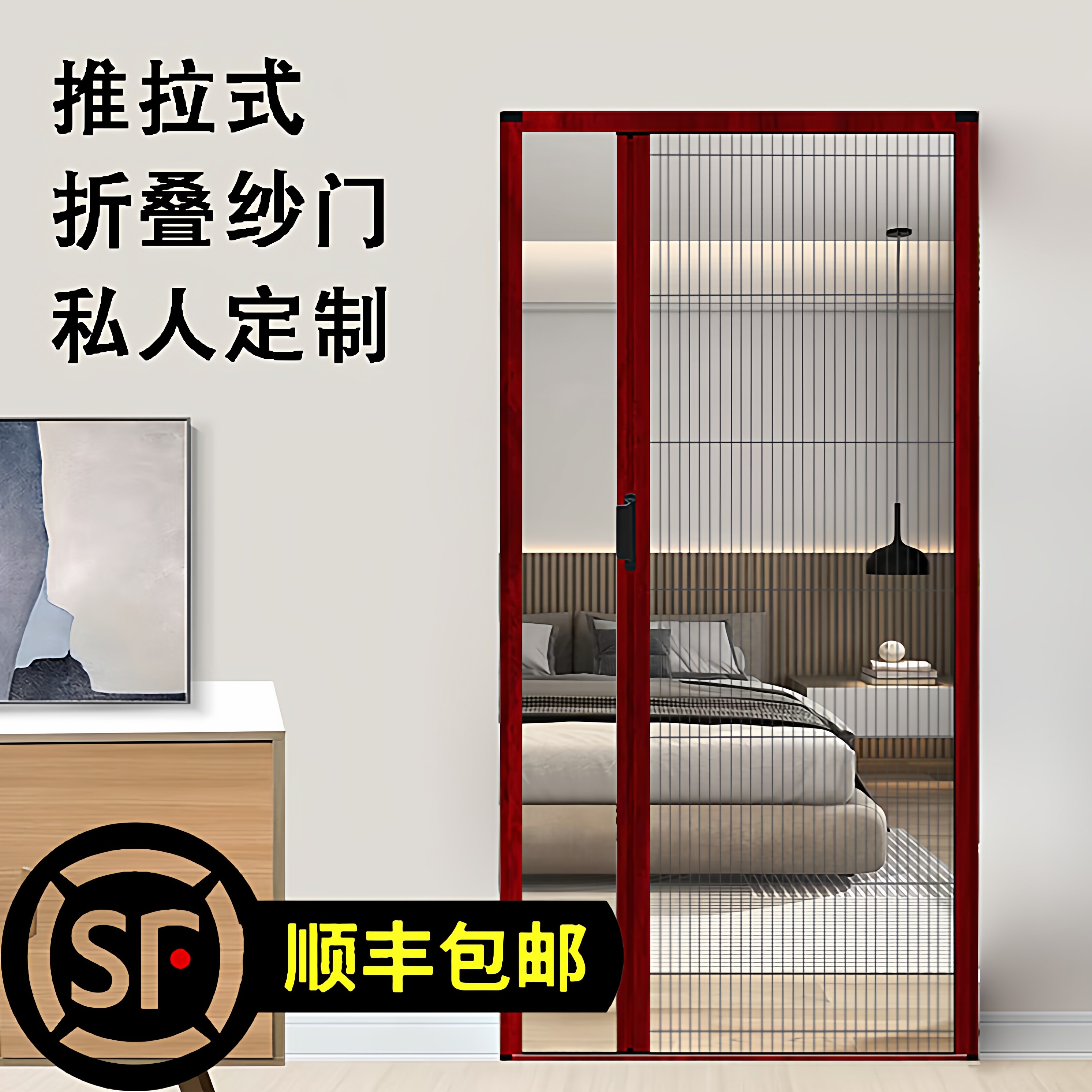 📚 折叠纱门家用定做铝合金伸缩防蚊门帘风琴纱网推拉式自装隐形纱窗
