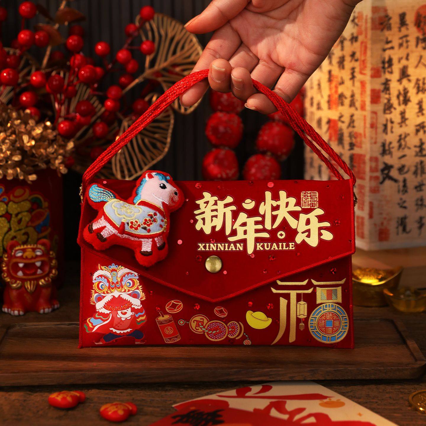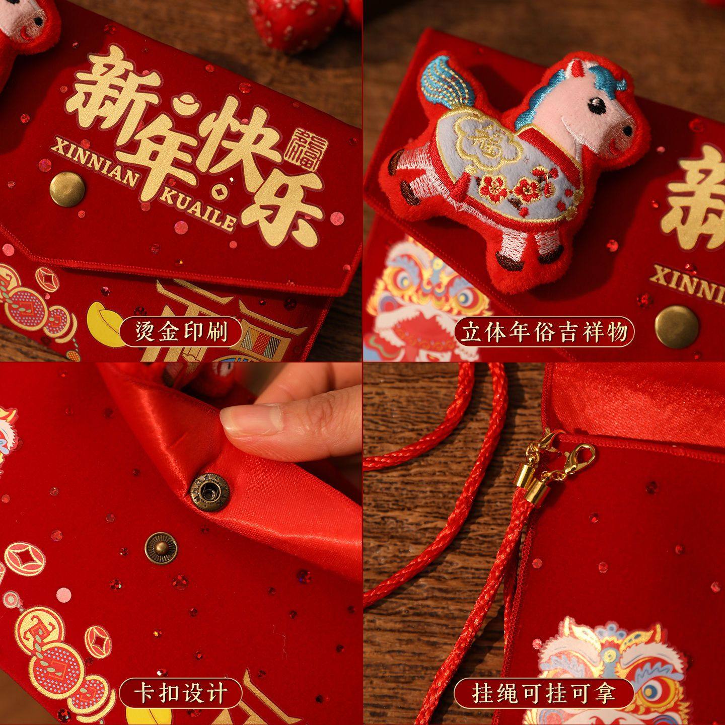 📚 一万元封包新年布艺红包袋2026新款马年背带儿童压岁钱包福袋春节