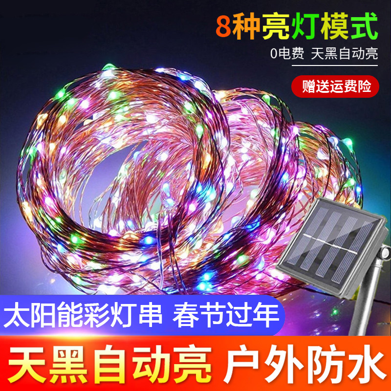 📚 太阳能彩灯闪烁户外防水超亮农村院子庭院氛围装饰灯带条led灯串