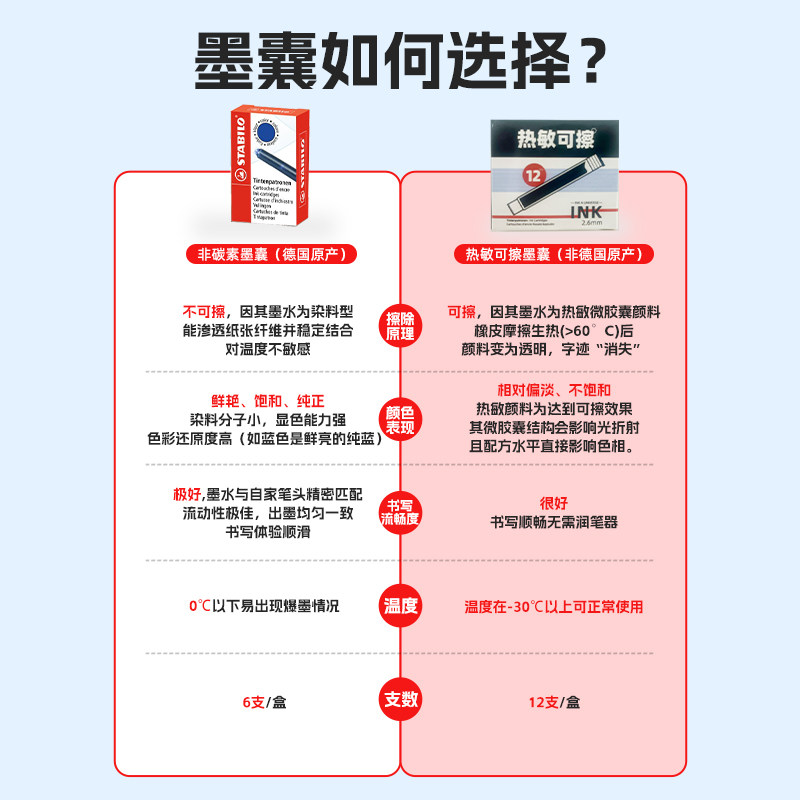 📚 stabilo旗舰店墨囊德国进口思笔乐三年级小学生钢笔墨囊2.6非碳素墨水6支大容量欧标通用蓝色墨胆黑色3秒速干