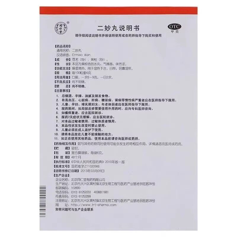 📚 北京同仁堂二妙丸官方正品男性阴囊潮湿三妙丸二妙散浓缩丸二秒