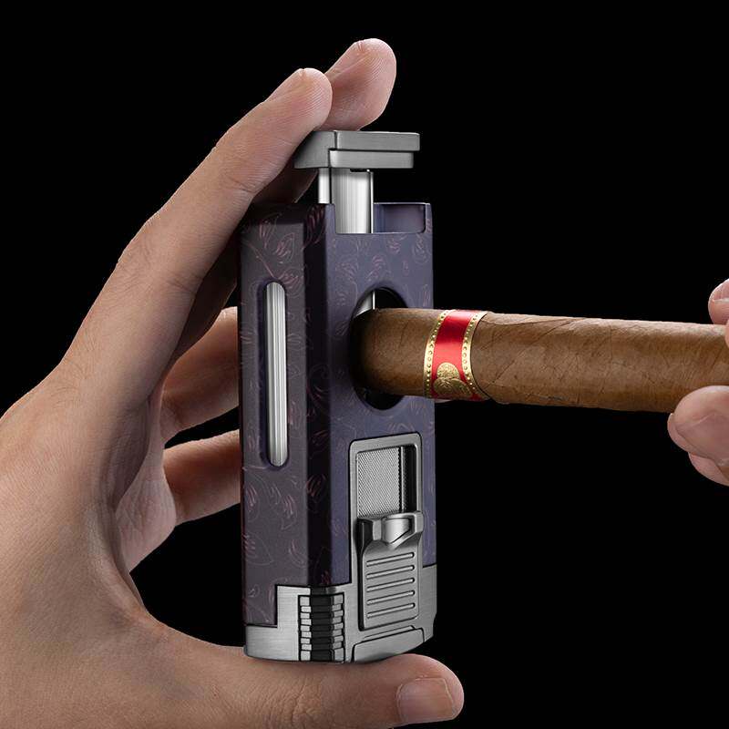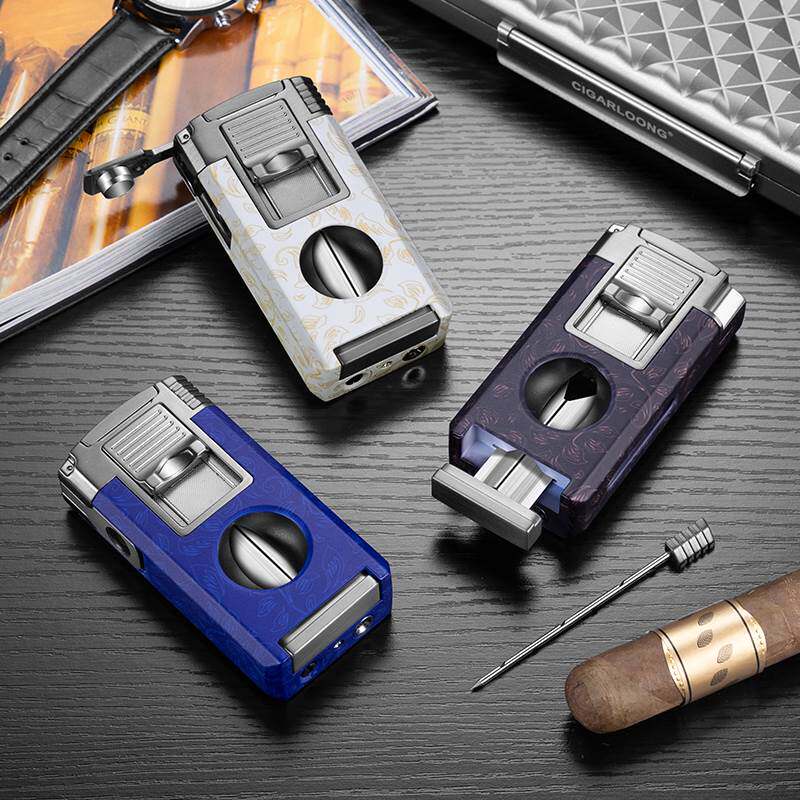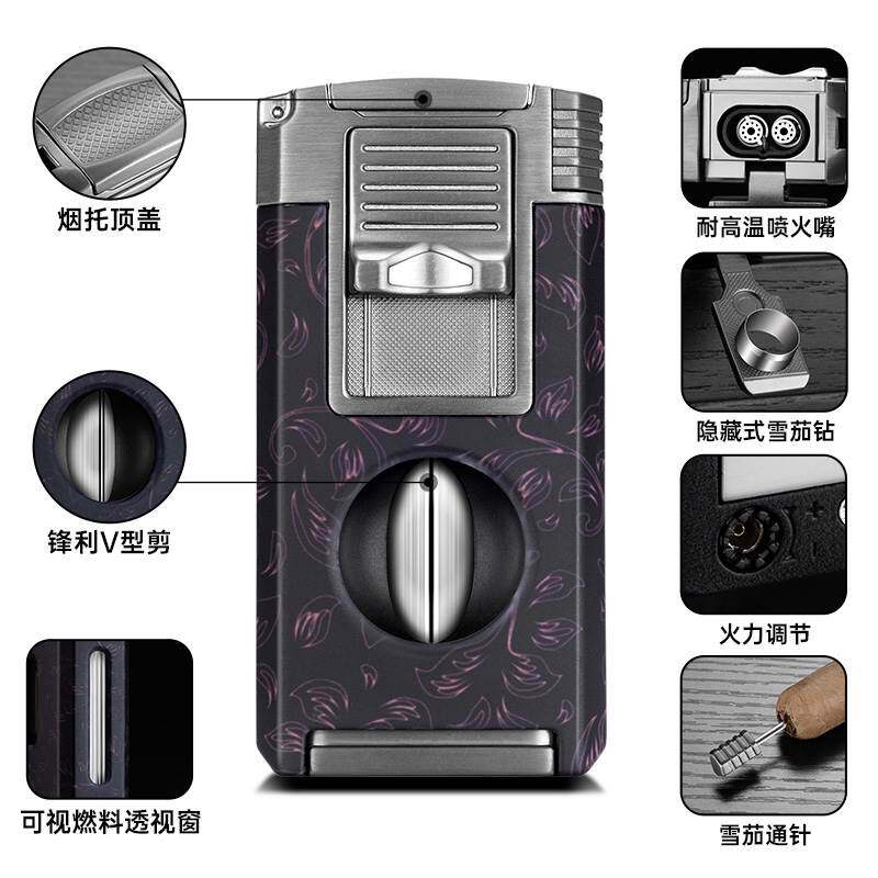 📚 茄龙雪茄打火机五合一多功能防风火机带雪茄钻烟托V剪通针CB-25C1