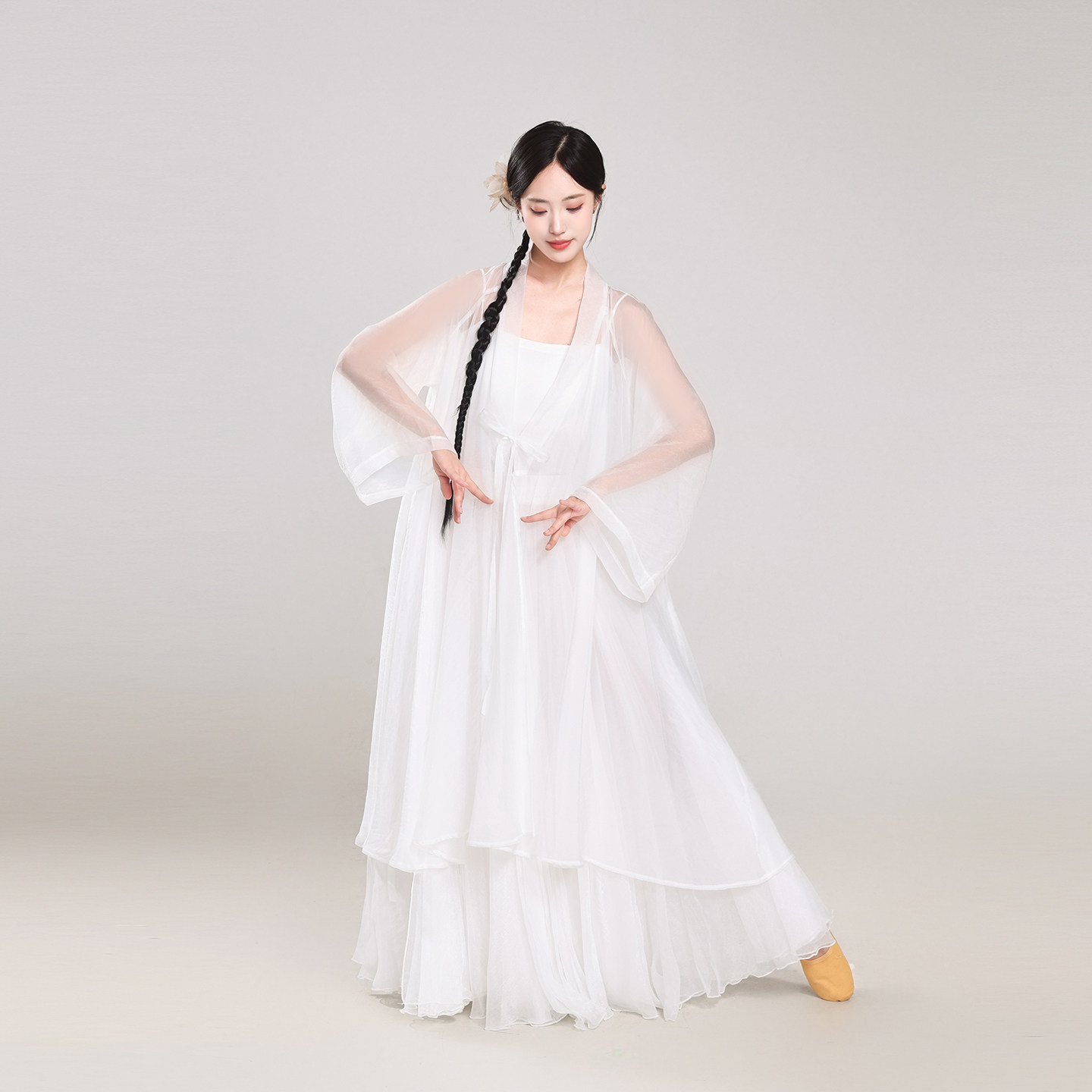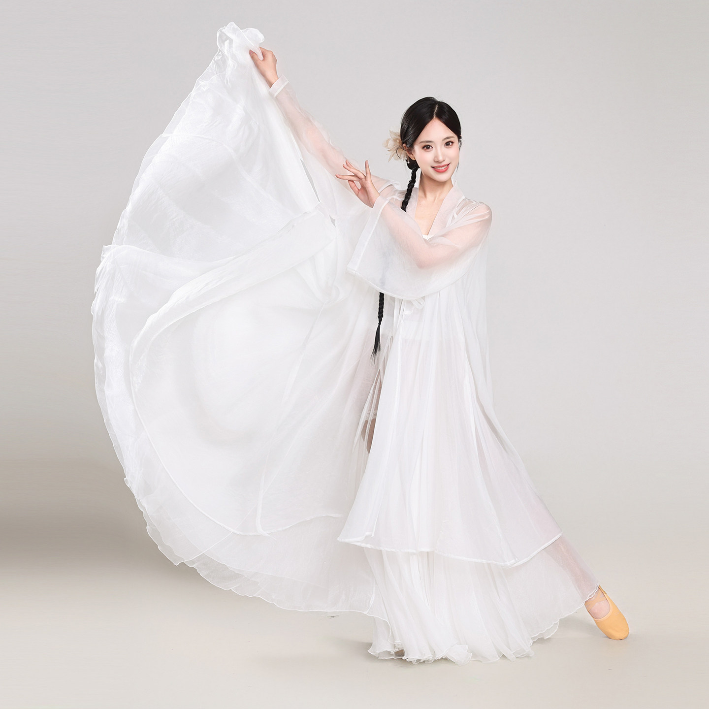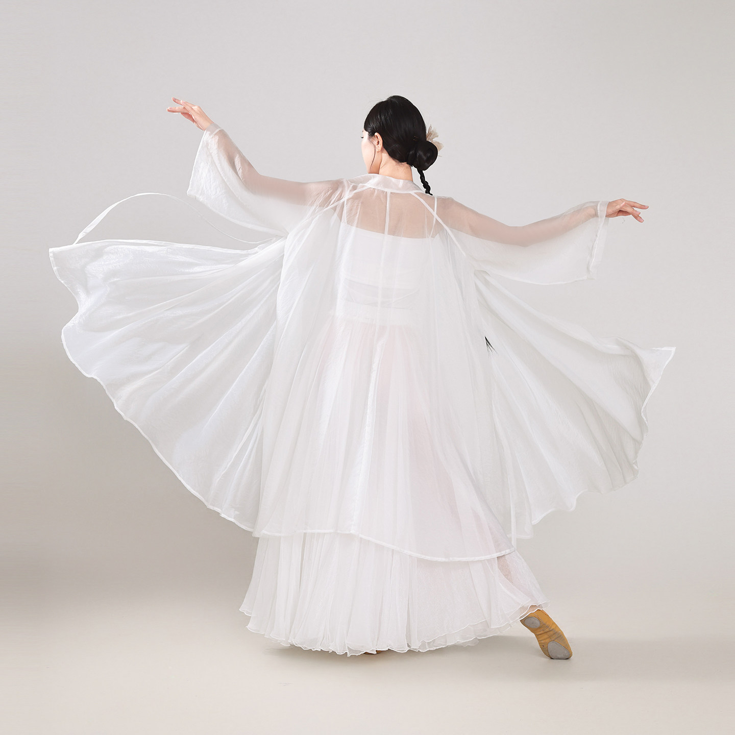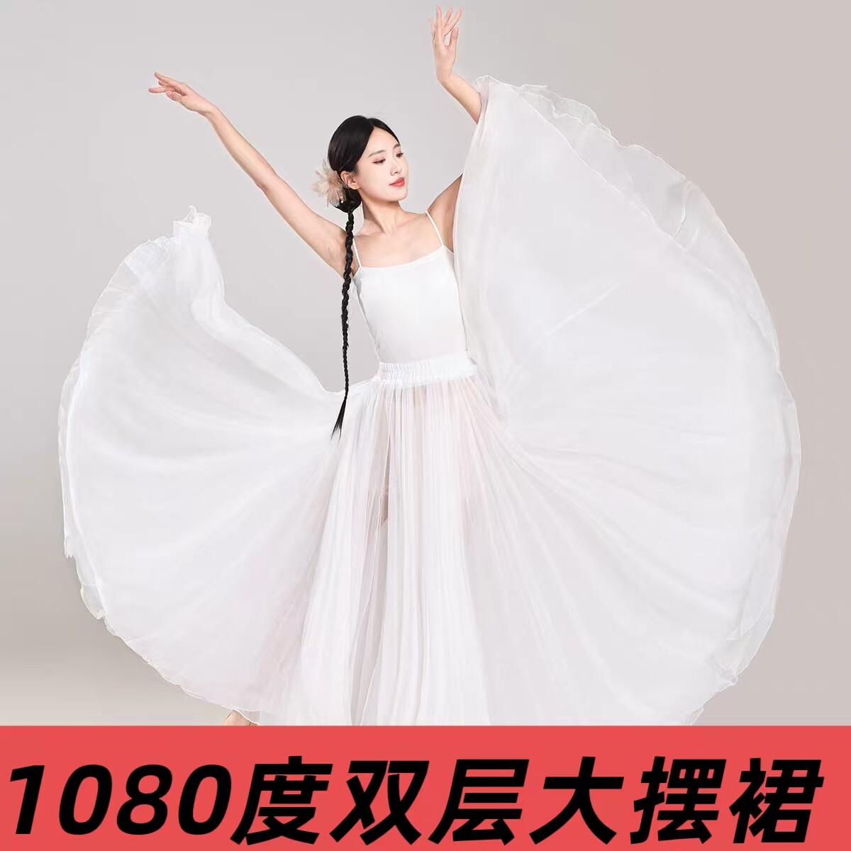 📚 古典现代舞1080度双层白色大摆裙古风爵士舞蹈开衫飘逸大摆纱衣