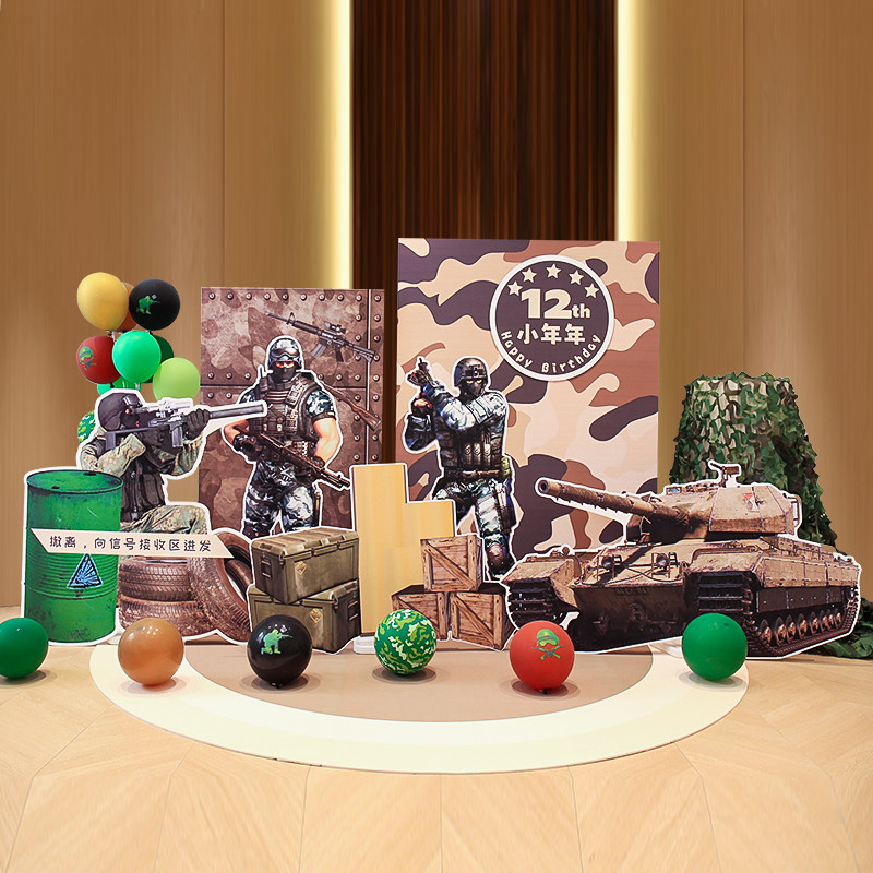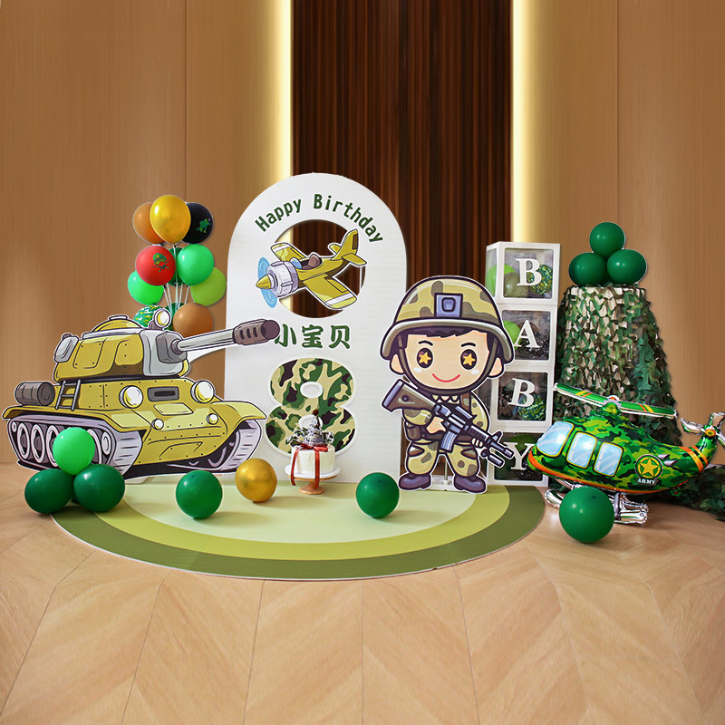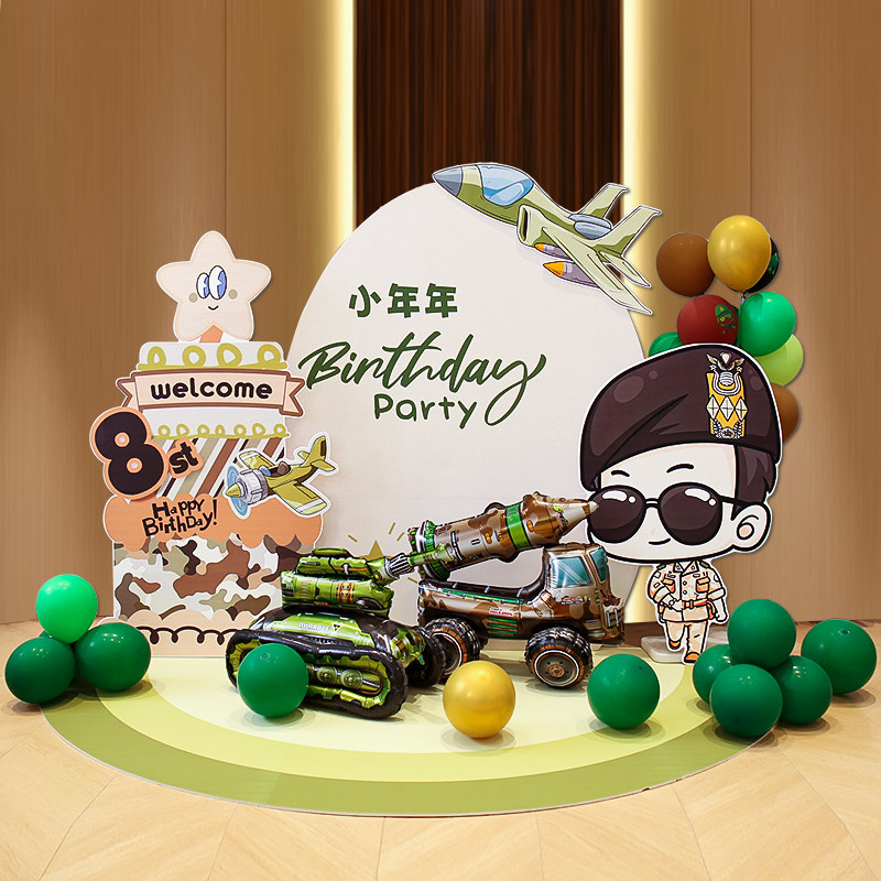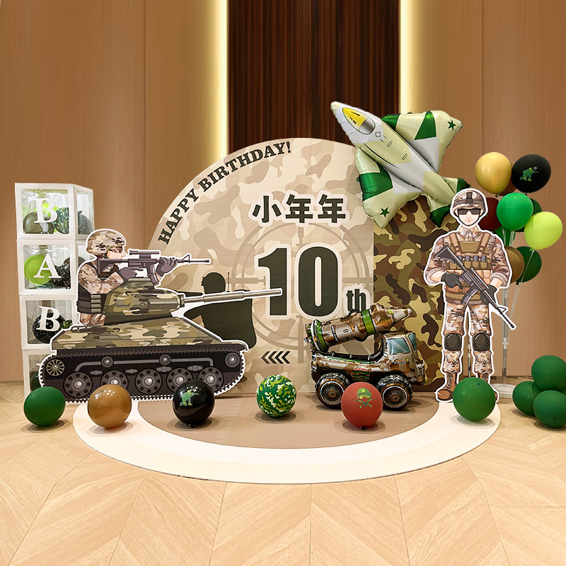 📚 男孩十岁坦克飞机军事主题生日氛围布置装饰气球背景墙kt板12多岁