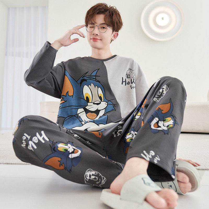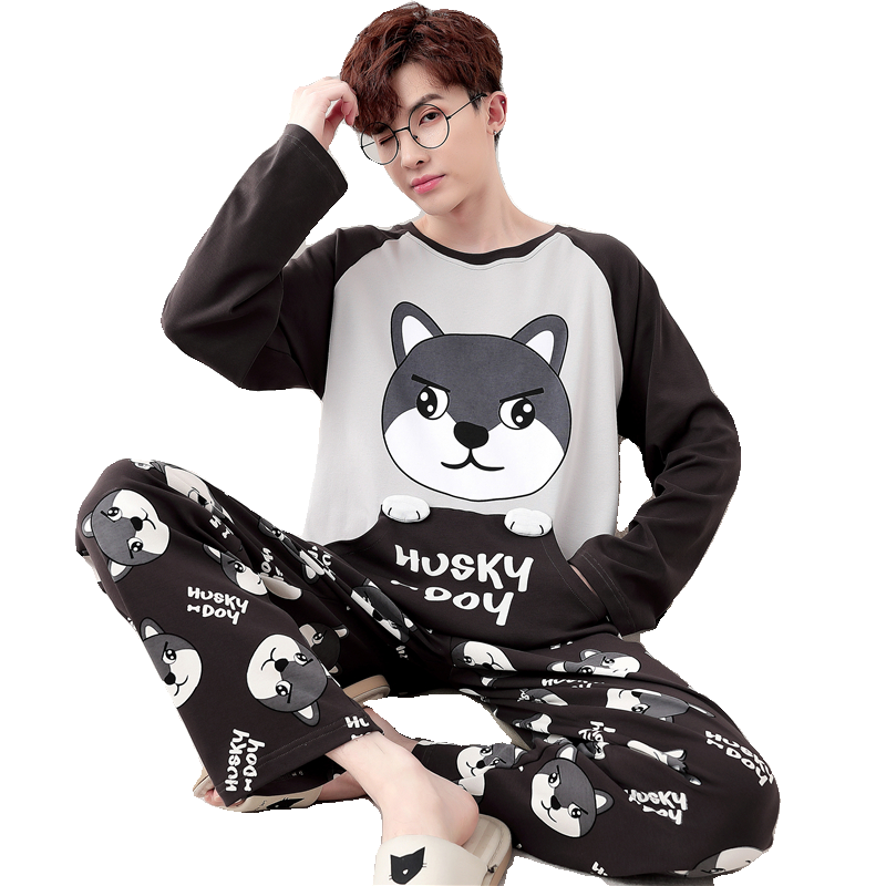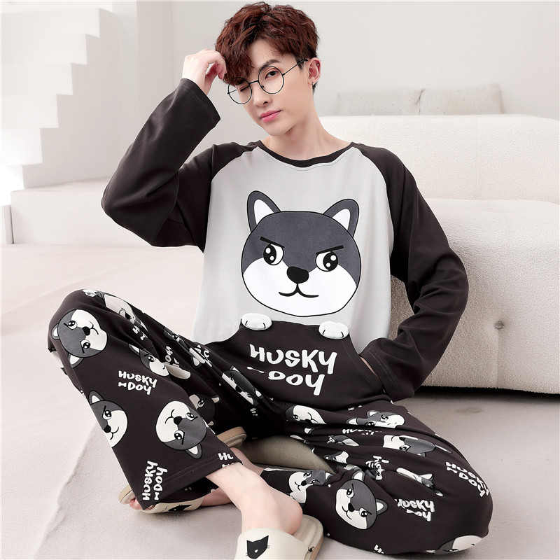 📚 青少年睡衣男孩夏季薄款长袖纯棉初中学生12中大童15岁春秋天套装