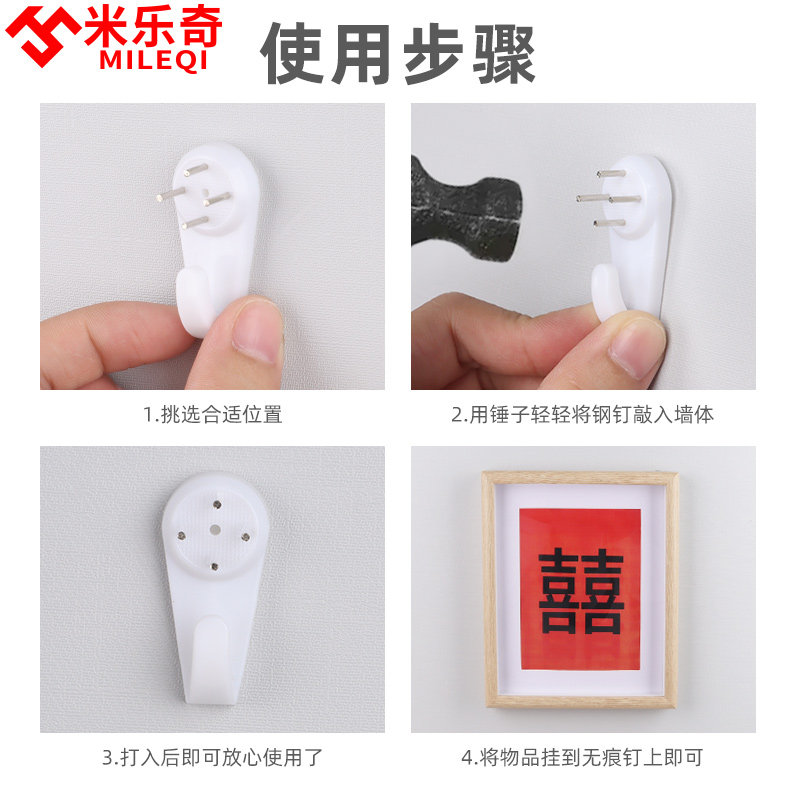 📚 无痕钉挂钩婚纱照挂墙钉墙纸水泥墙强力承重挂勾床头照壁挂置物架