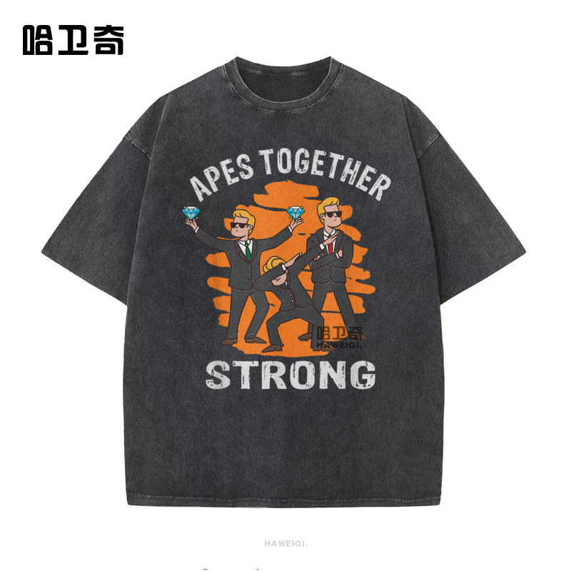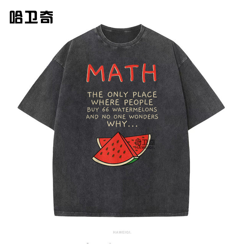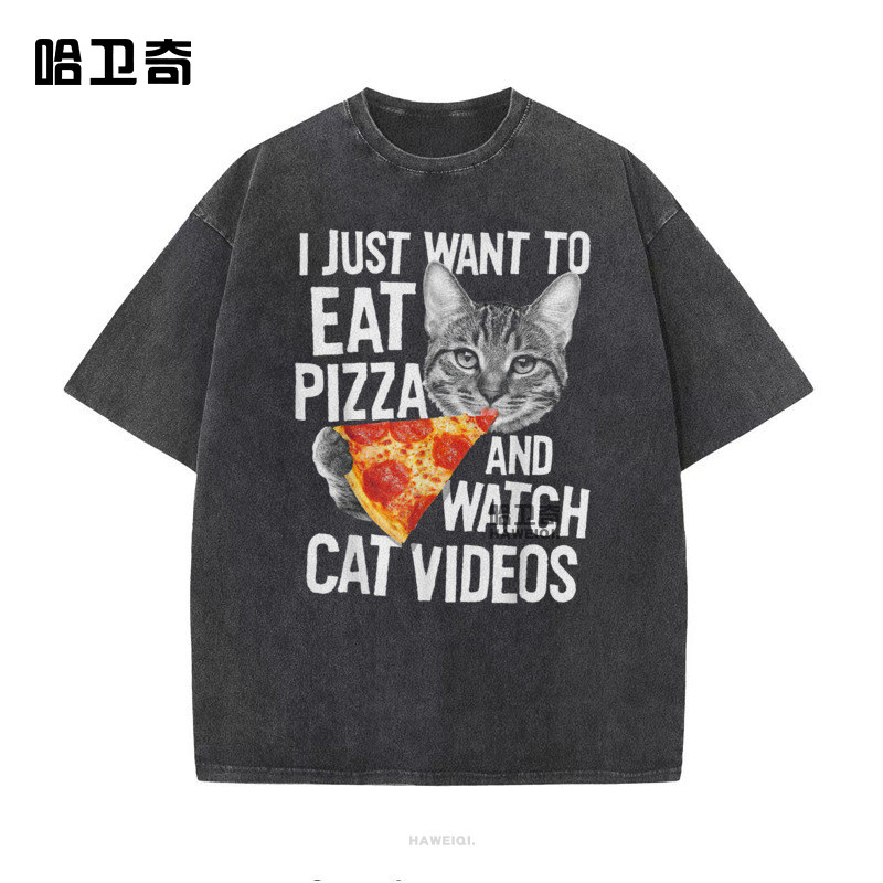 📚 春夏短袖T恤跨境水洗做旧欧美女士卡通猫咪原宿风复古纯棉上衣服
