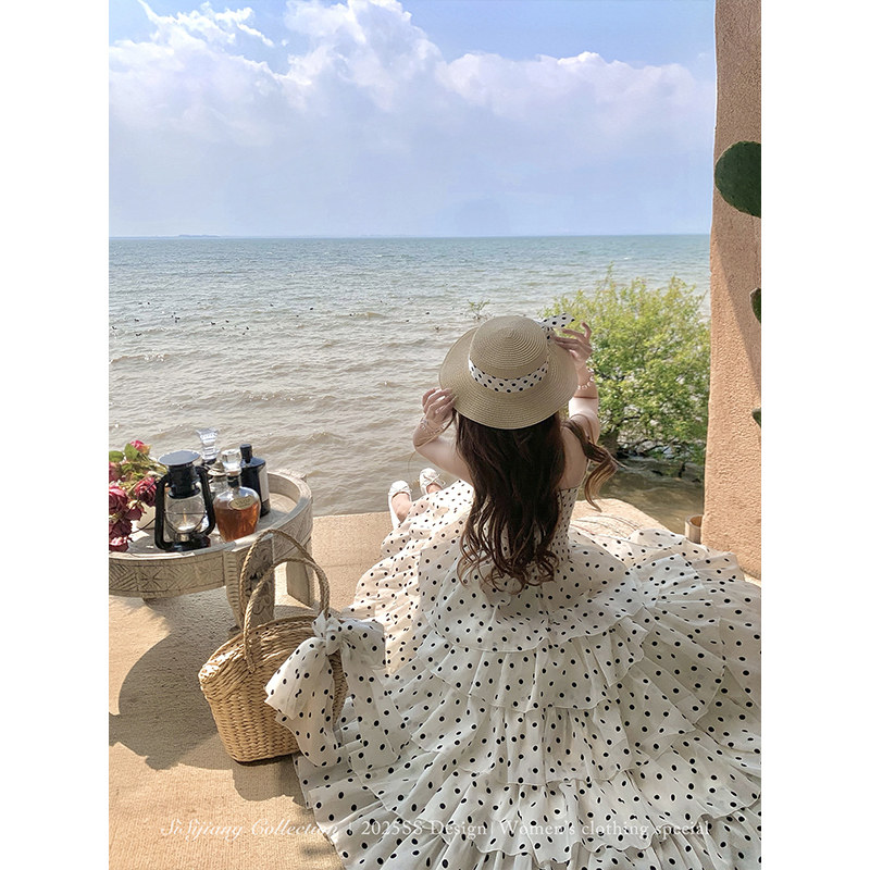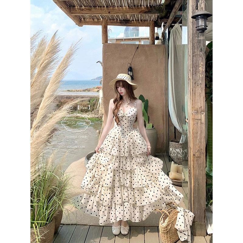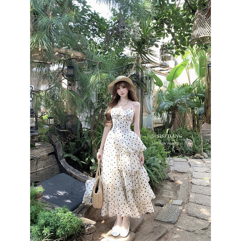 📚 SISI JIANG“罗马假日”法式度假温柔波点收腰显瘦时尚吊带连衣裙