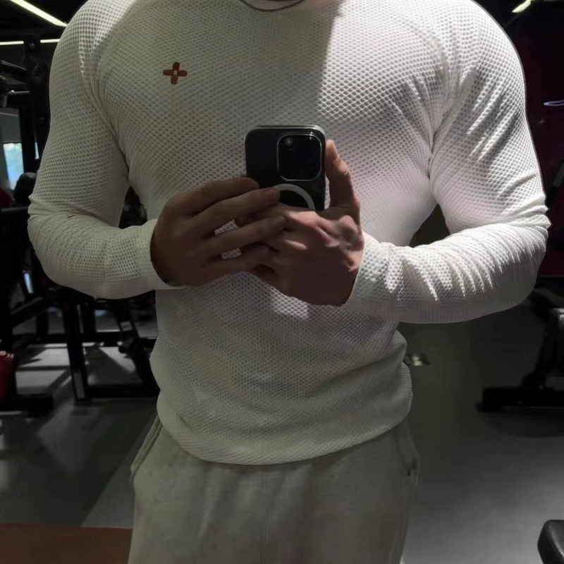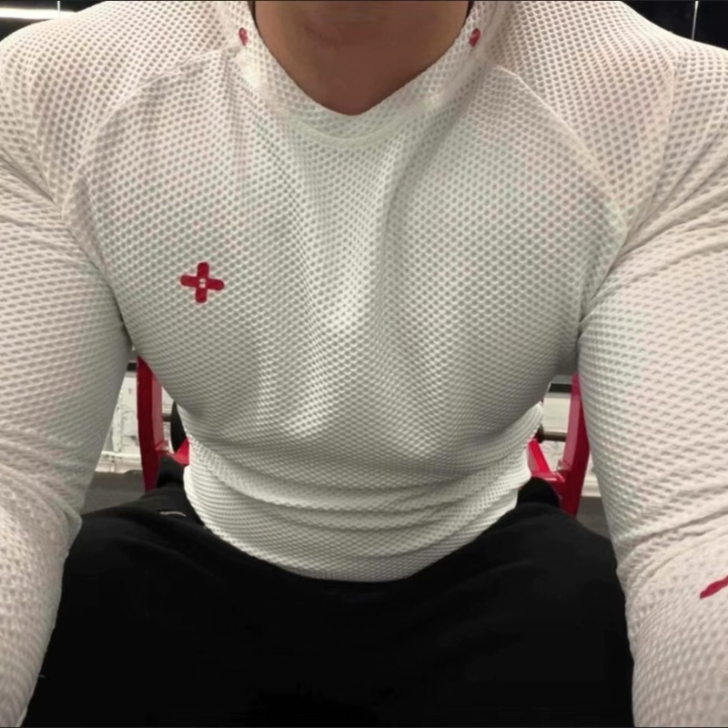 📚 Basic Unit 基本单元 网眼弹力紧身运动T恤男款长袖健身衣服显大