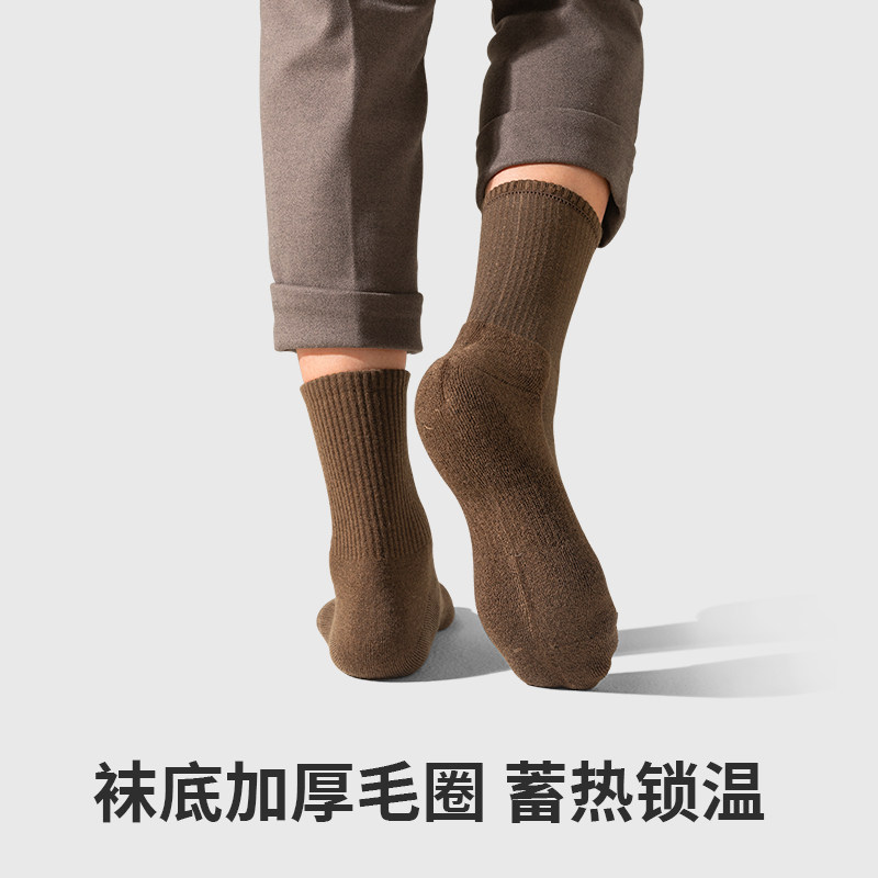 📚 副歌25%羊毛袜子男秋冬加绒中筒袜冬天加厚毛圈保暖袜男士毛巾袜