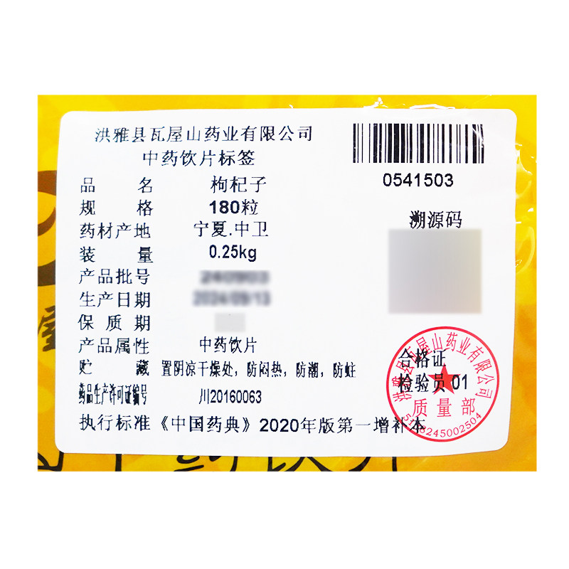📚 瓦屋山药业中药饮片 枸杞子 180粒 中药材抓配 中药材店铺大全