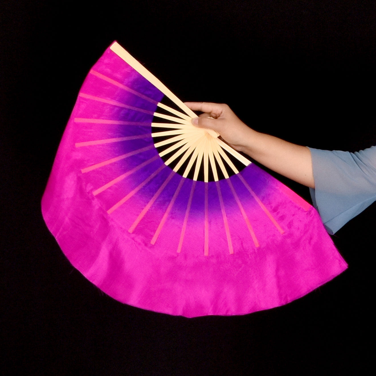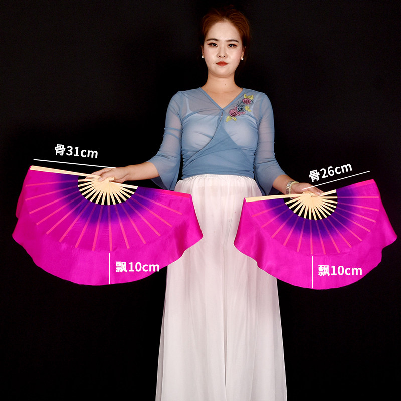 📚 真丝舞蹈扇子一尺八寸双面山西民间小花戏紫玫渐变胶州秧歌跳舞扇