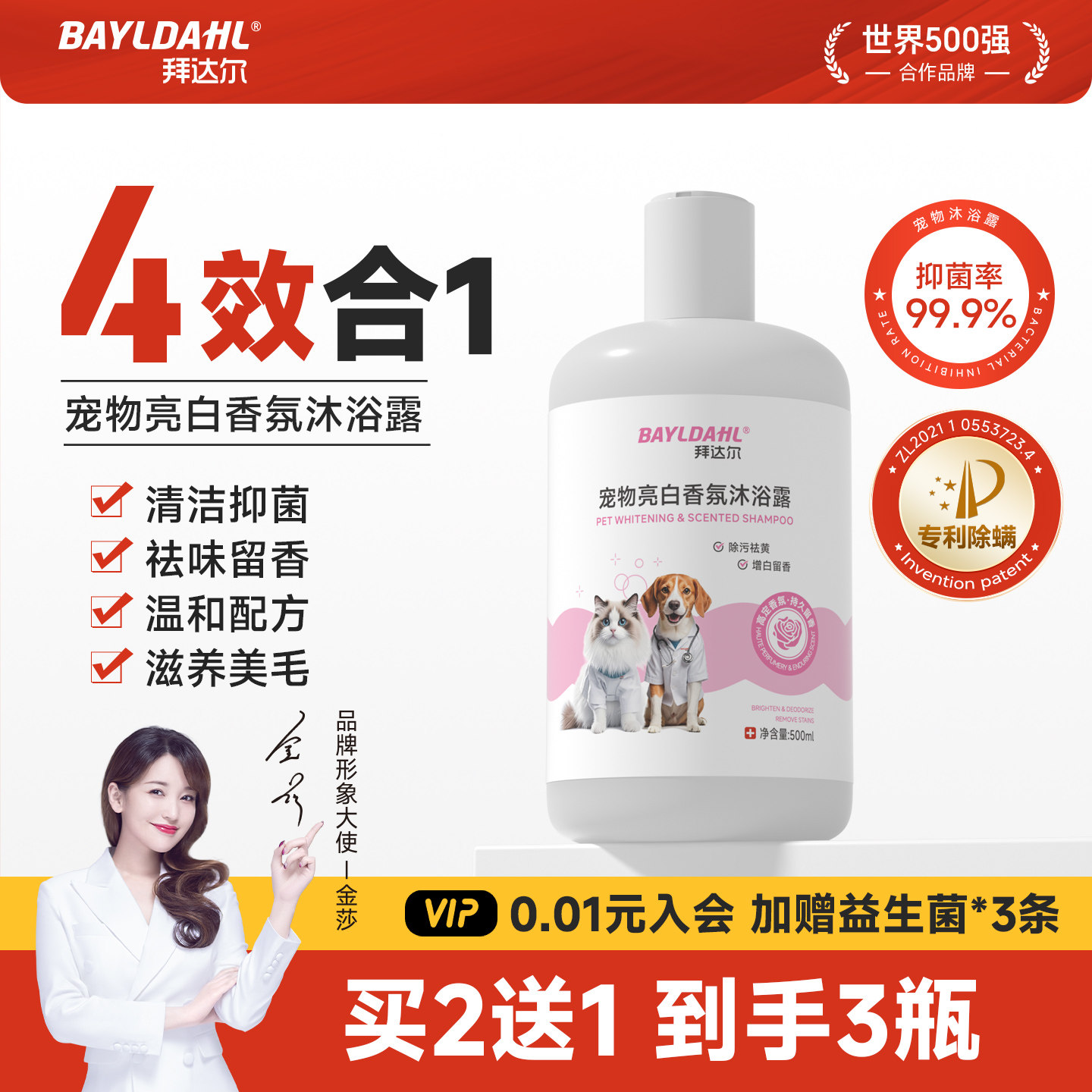 📚 拜达尔猫咪宠物洗澡专用沐浴露洗护二合一杀菌除螨留香小猫沐浴液