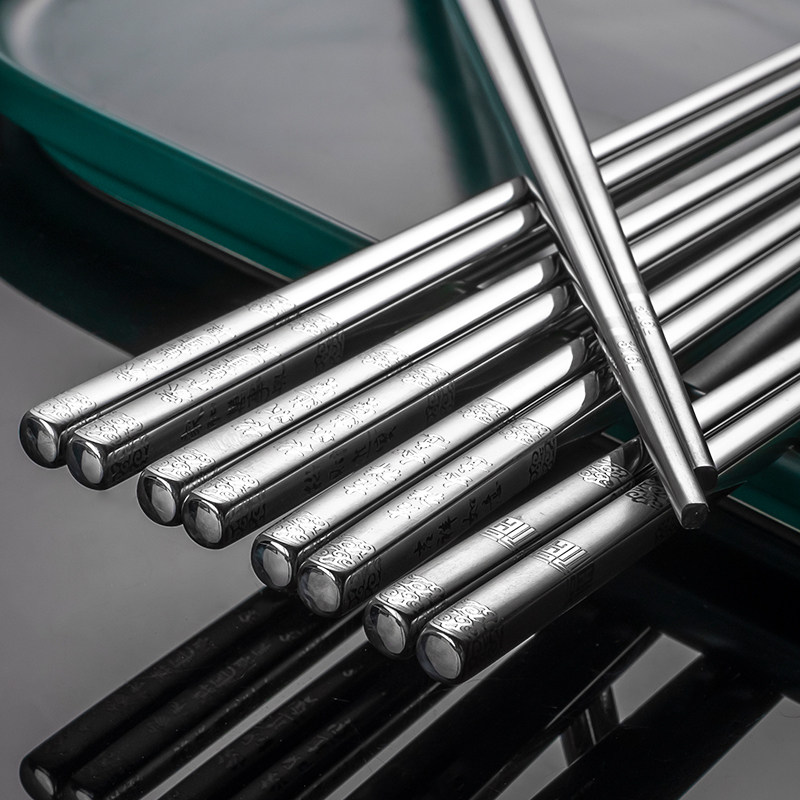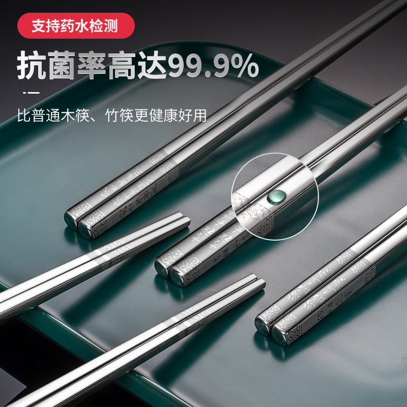 📚 铜离子抗菌国标27加长不锈钢筷子家用高档防滑套装合金属快子家庭