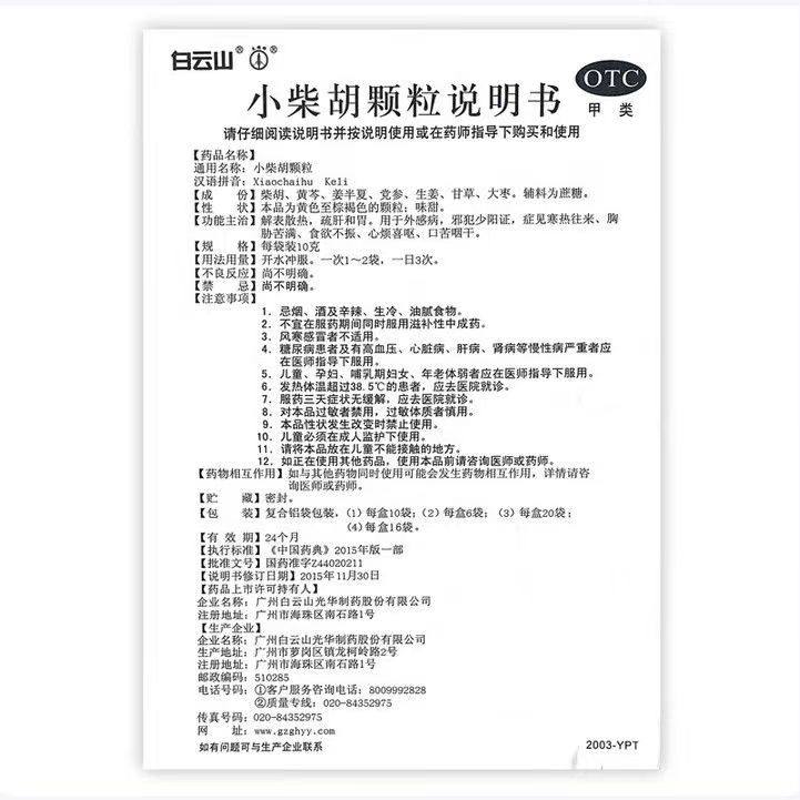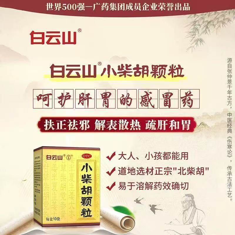 📚 白云山小柴胡颗粒10g*10袋正品解表散热食欲不振咽干咳嗽感冒冲剂