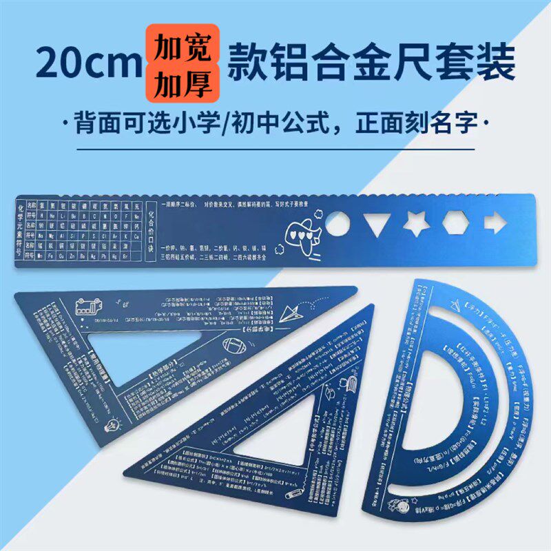 📚 铝合金多功能尺子定制小学生初中生专用刻名字刻公式四件套套装尺