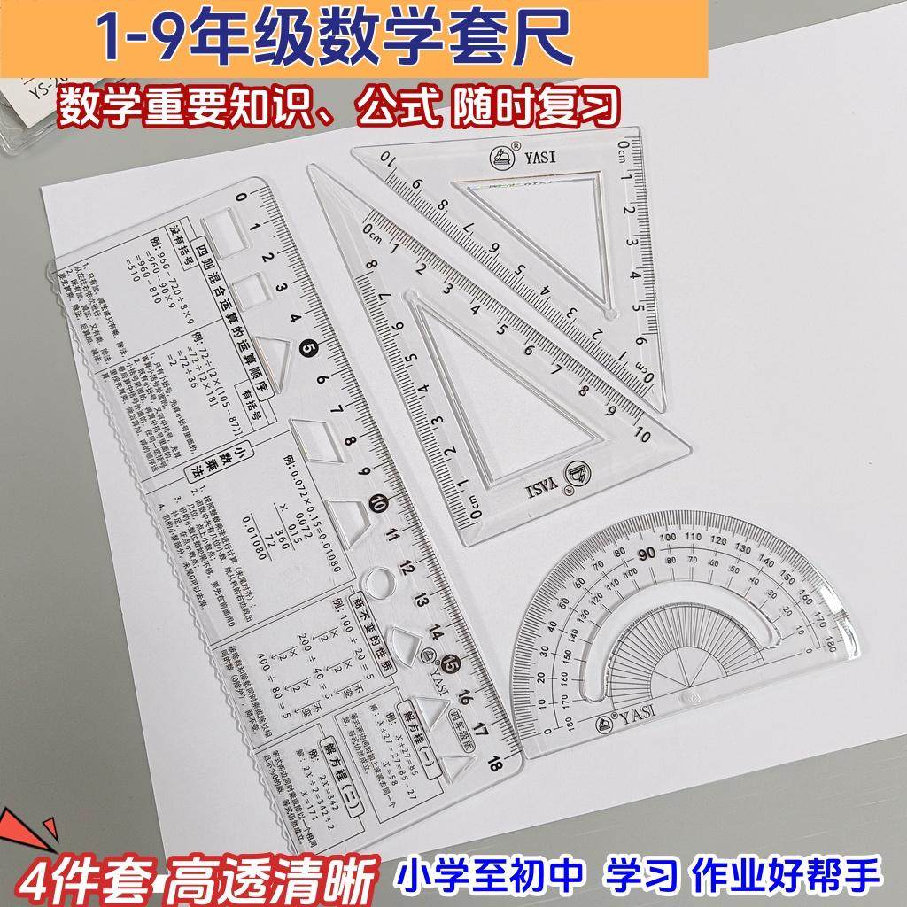 📚 雅思小学初中生数学公式知识点套尺四件套高透明三角板量角器直尺
