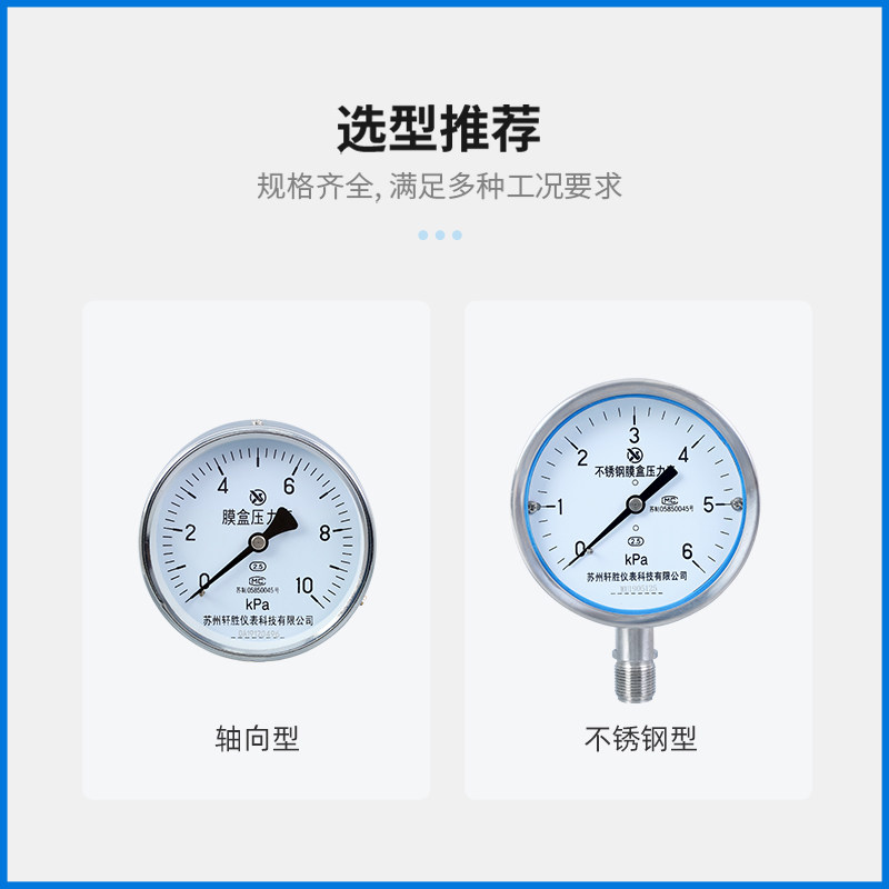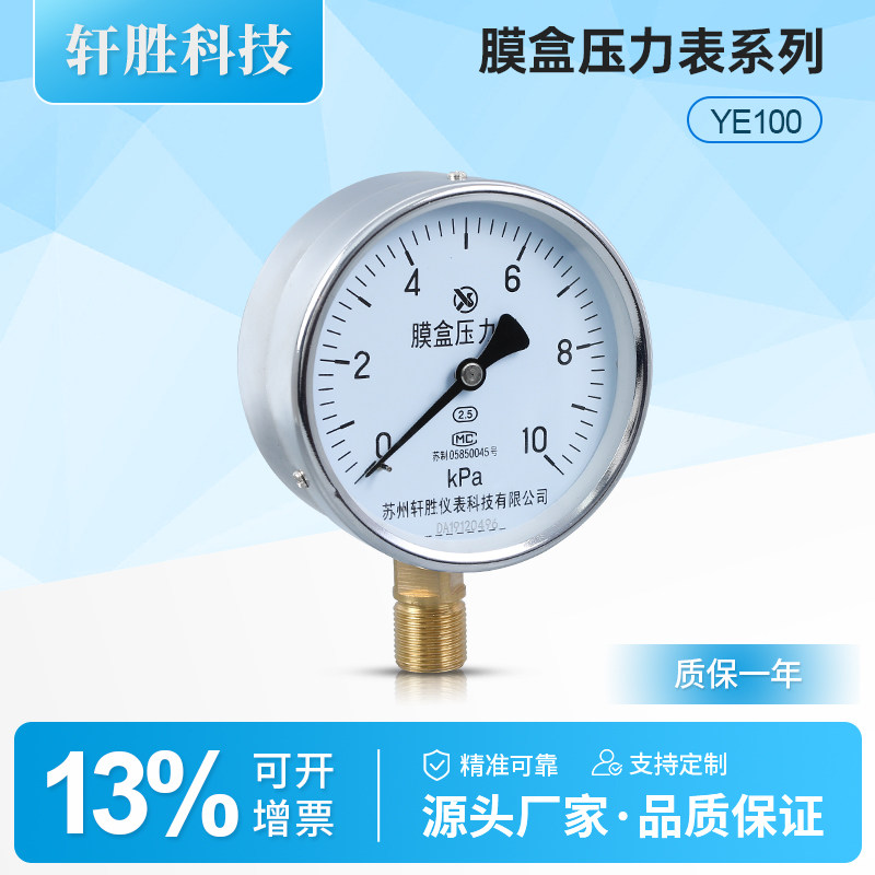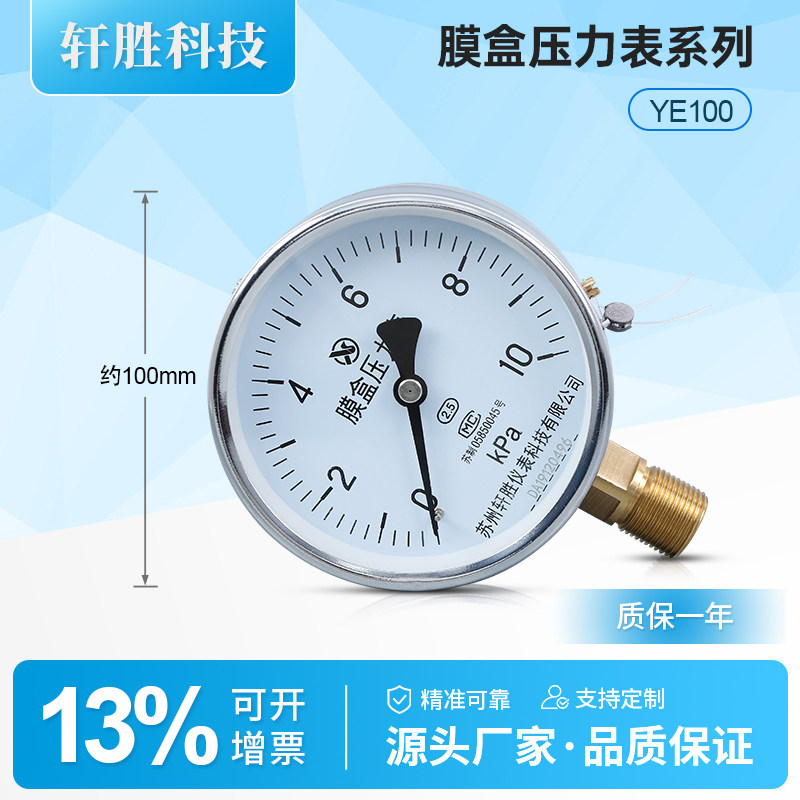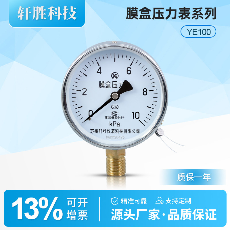 📚 苏州轩胜YE100 10kPa膜盒压力表 天燃气 煤气 油气微压气压压力表