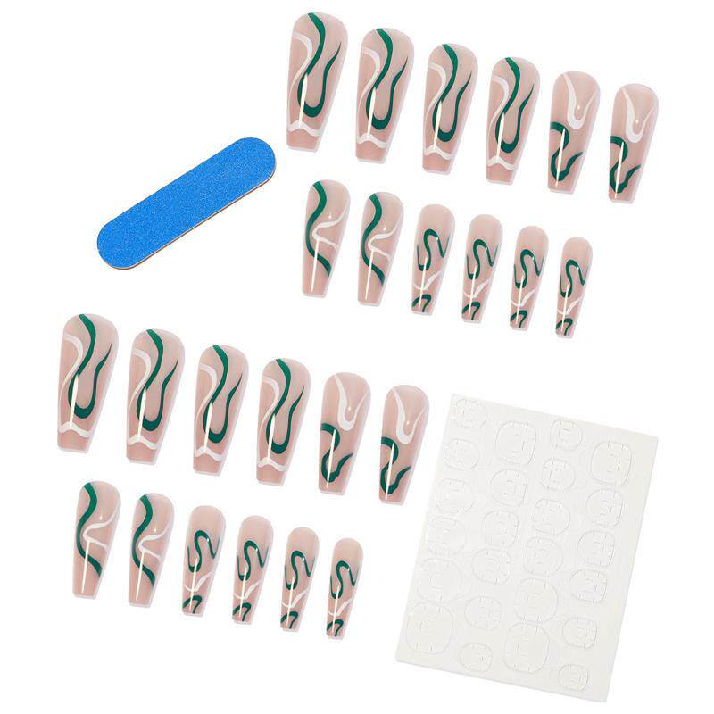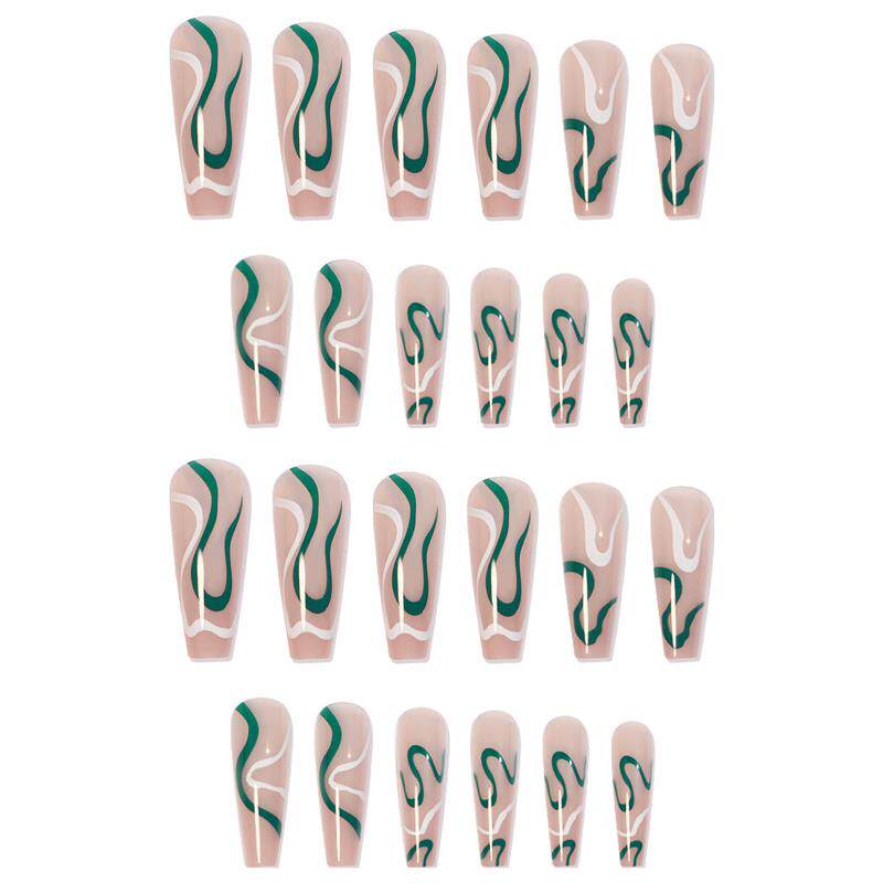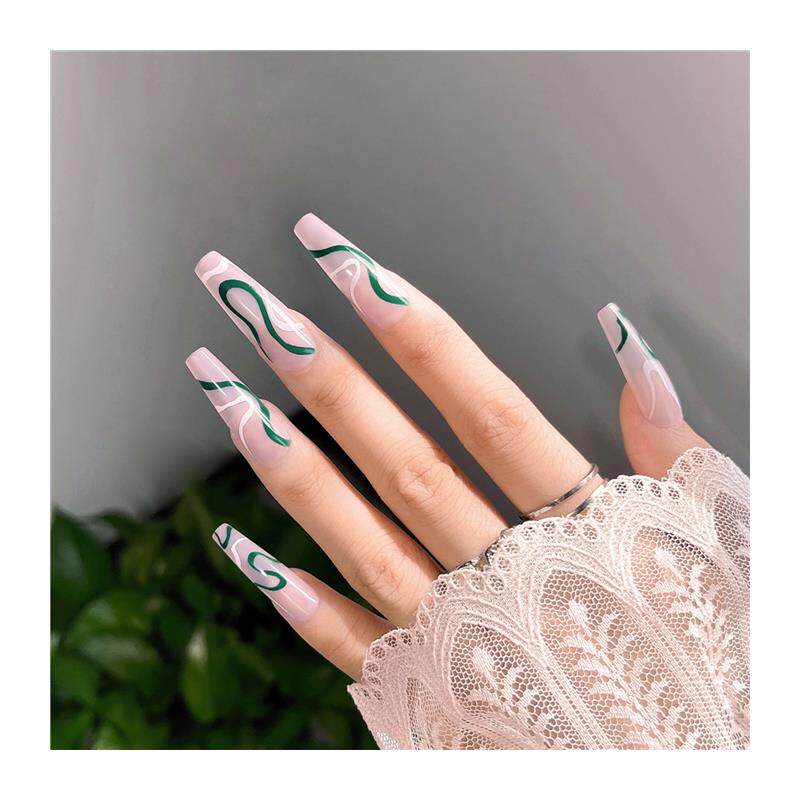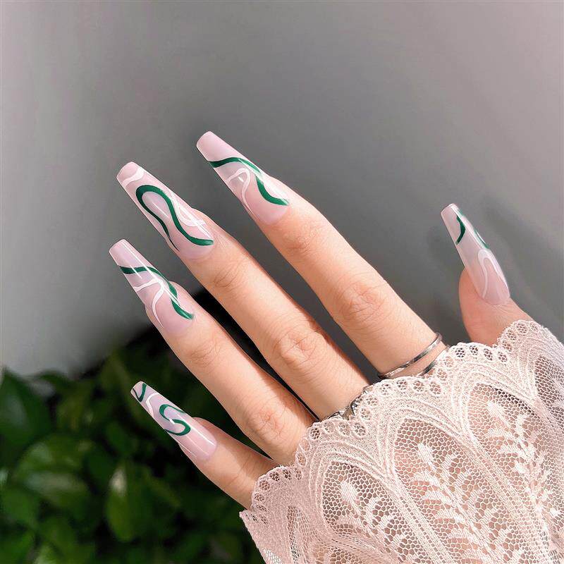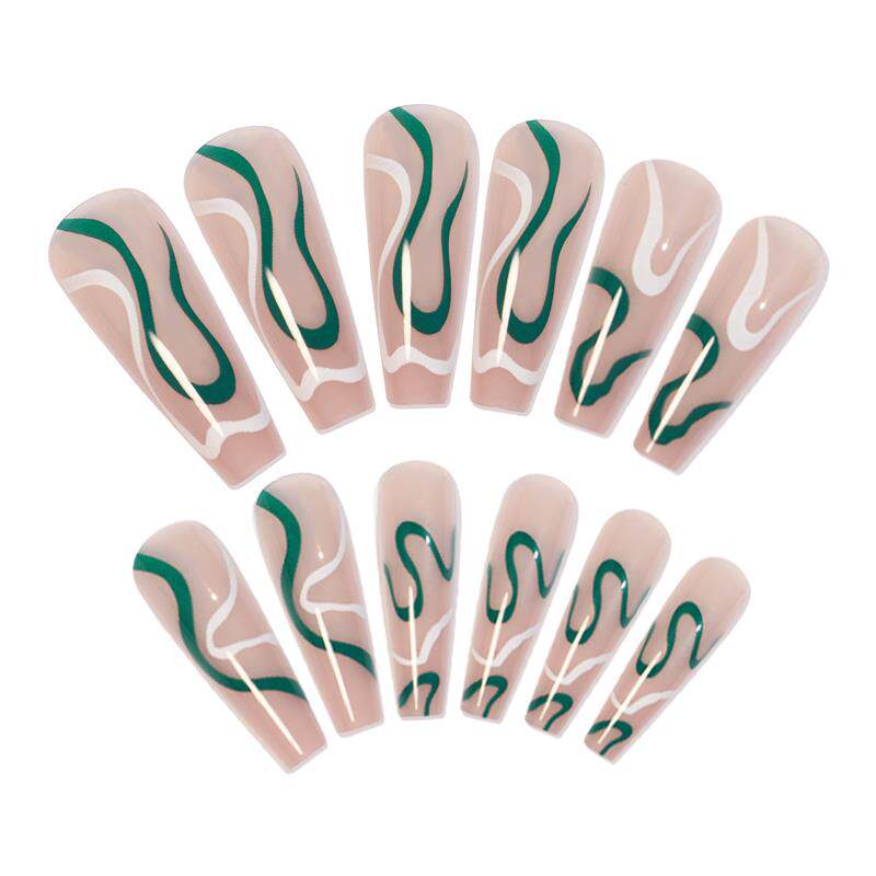📚 A wave series of green-coloured Press on nail with pseudo-na