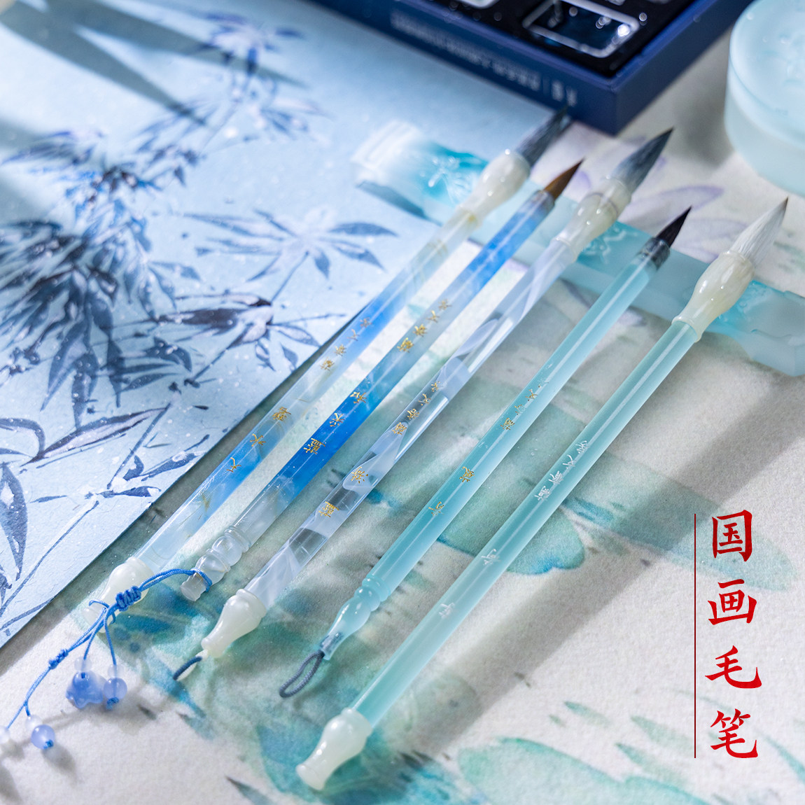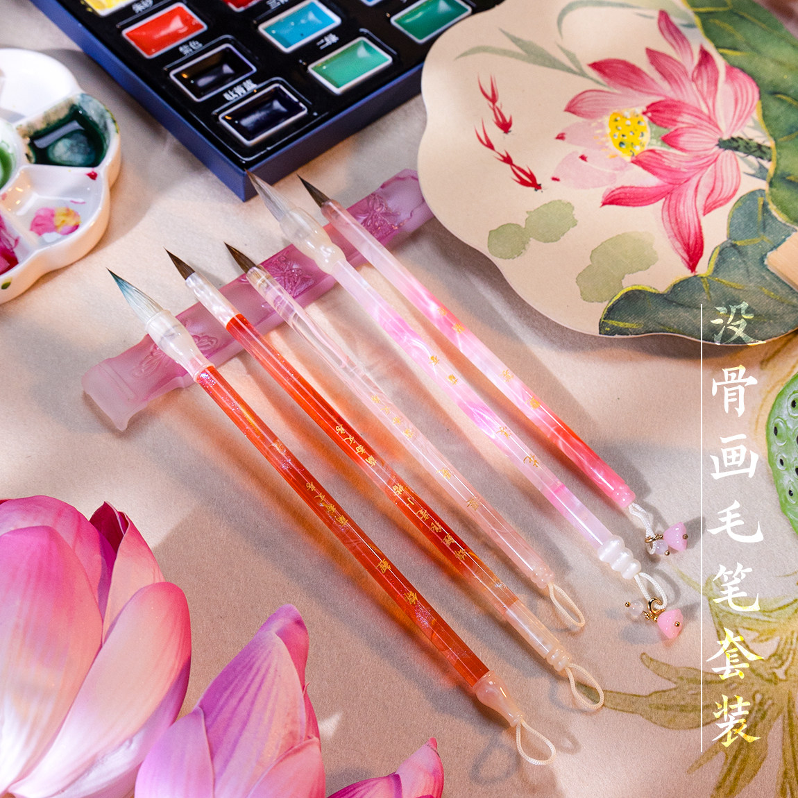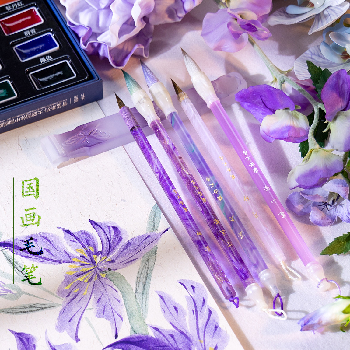 📚 中国画专业级毛笔套装小楷工笔勾线笔初学者入门水彩专用小号练字练习描红湖笔狼兼毫笔书法紫粉漂亮颜值女生