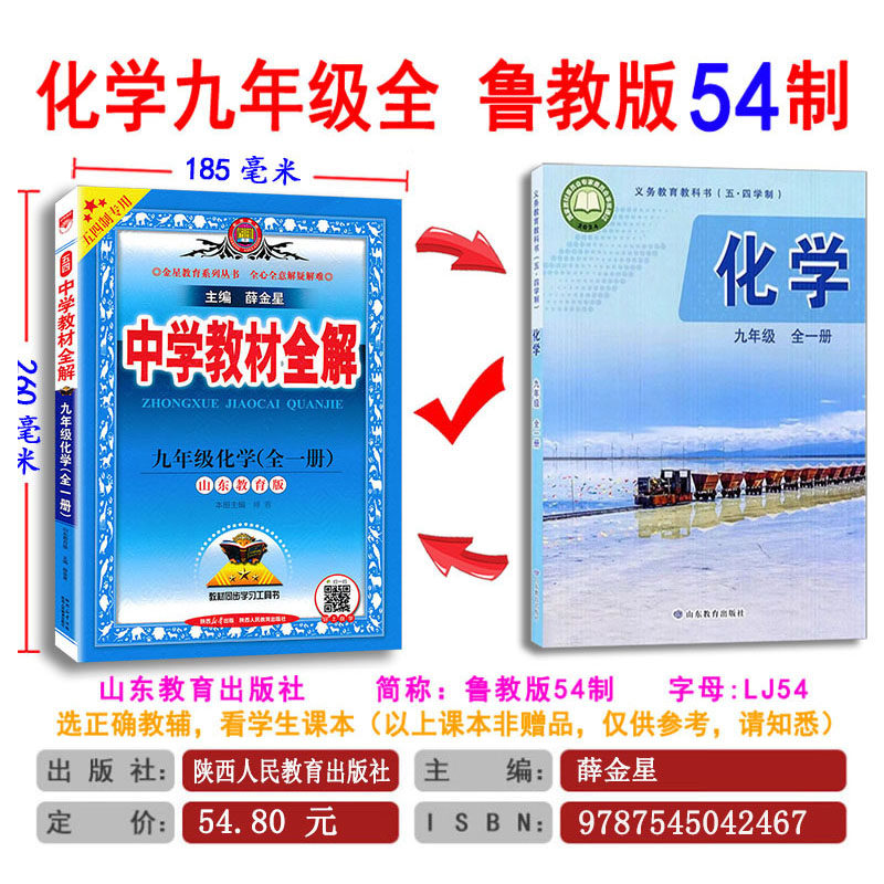 📚 鲁教五四中学教材全解九年级化学全一册上下册鲁教版山东教育版五四制 初四九年级化学鲁教54制辅导书同步教材学习资料书教材解读
