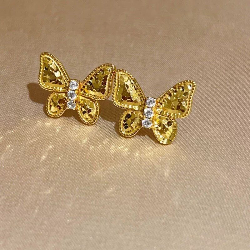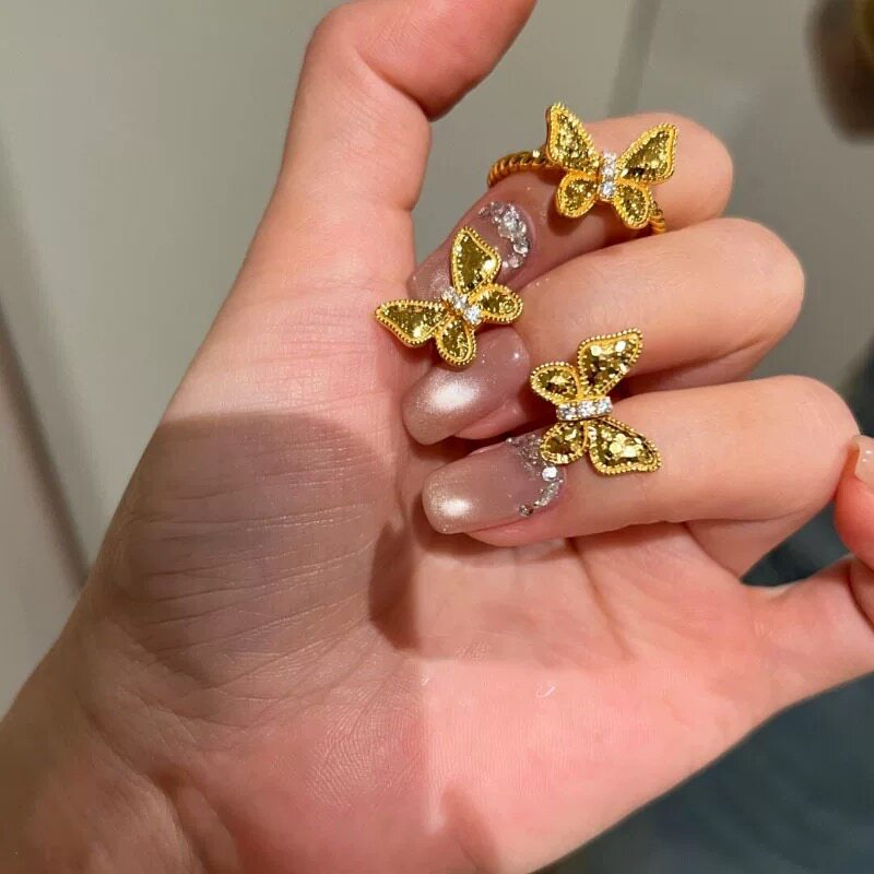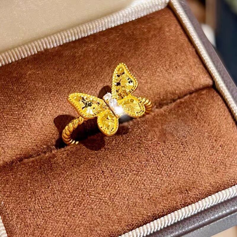 📚 沙金简约碎冰冰蝴蝶戒指女款轻奢高级感指环手饰金色时尚款日常