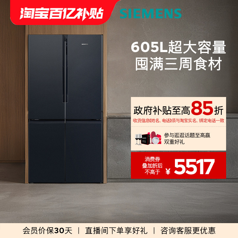 📚 西门子605L四门对开双开门家用冰箱官方旗舰店一级能效大容量1549