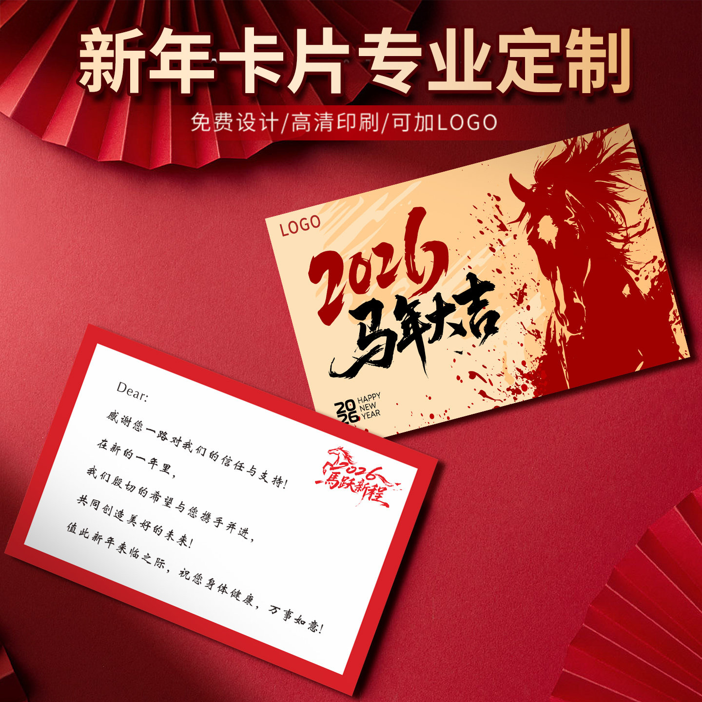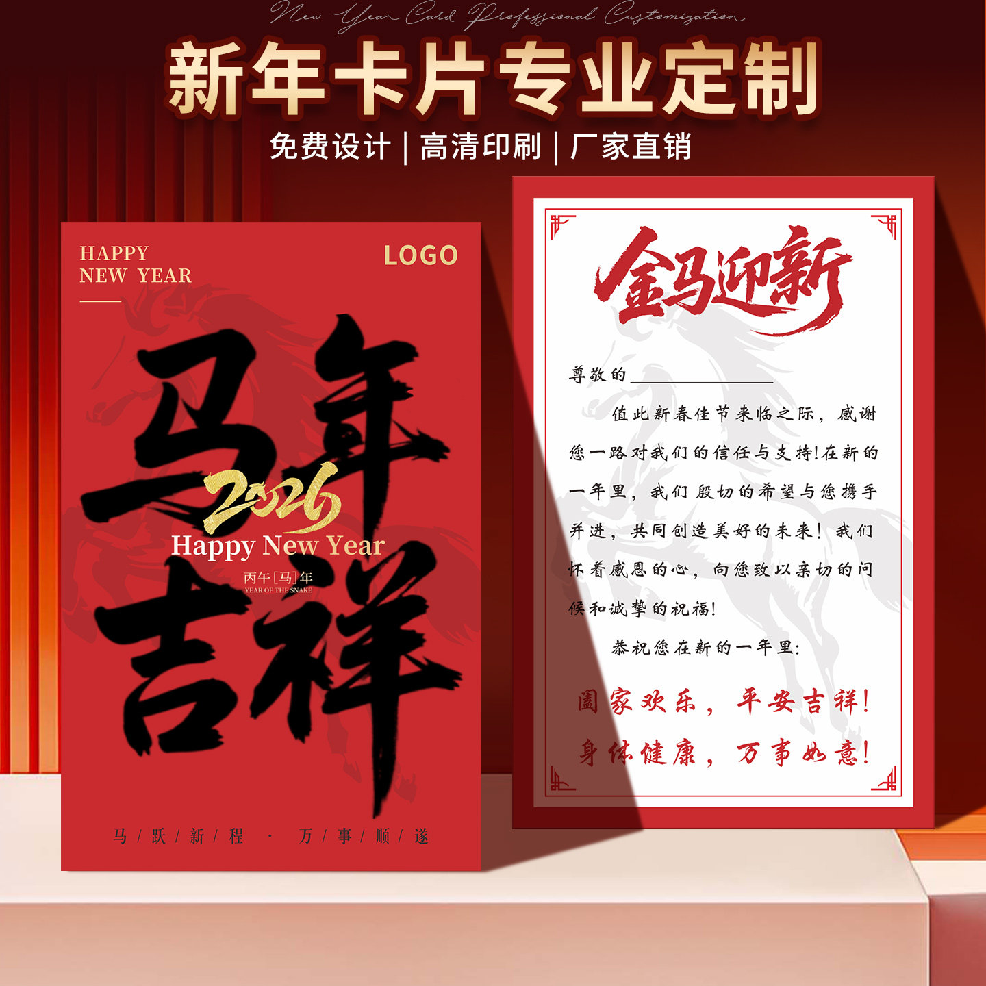 📚 新年卡片定制2026马年创意祝福感谢贺卡设计年货礼盒送礼留言卡说明卡广告宣传送员工客户年会邀请函请柬活动