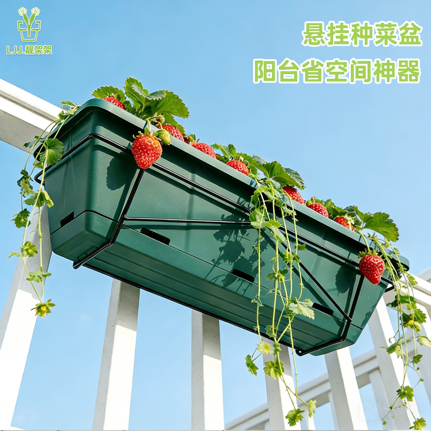 📚 神器花盆塑料阳台种菜盆箱悬挂式草莓盆长方形挂式长条花盆霍仑盆