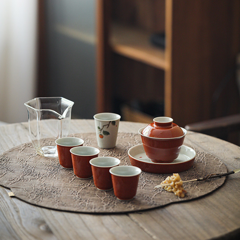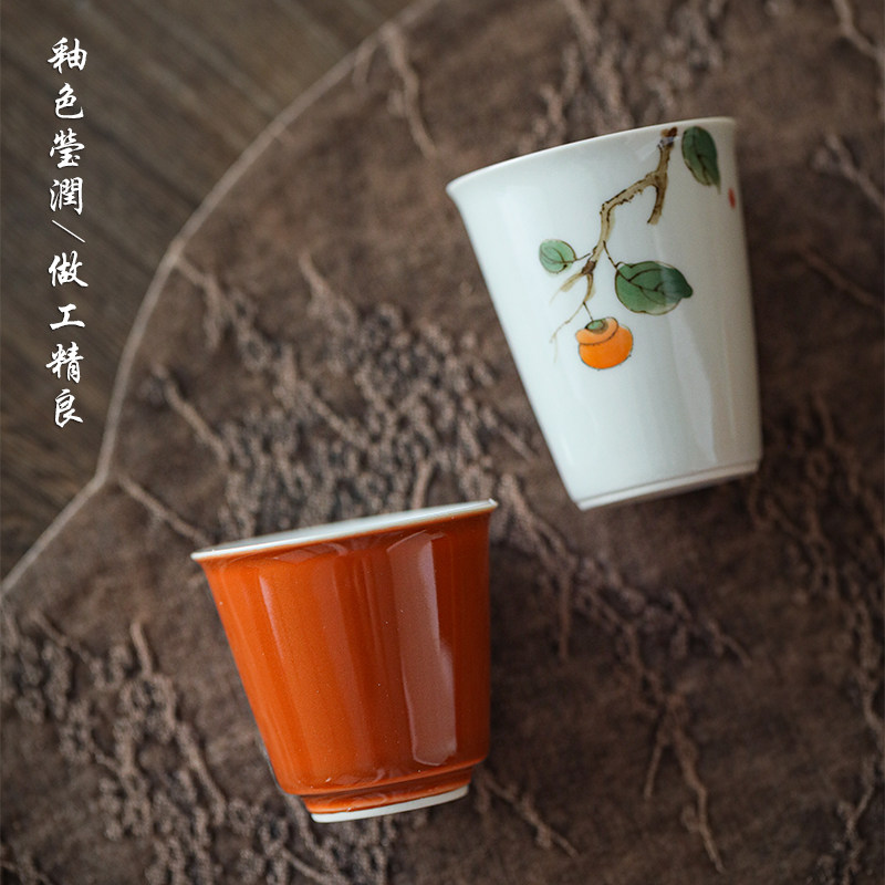📚 景德镇手绘柿柿如意茶具个人专用茶道高颜值功夫盖碗泡茶礼盒装