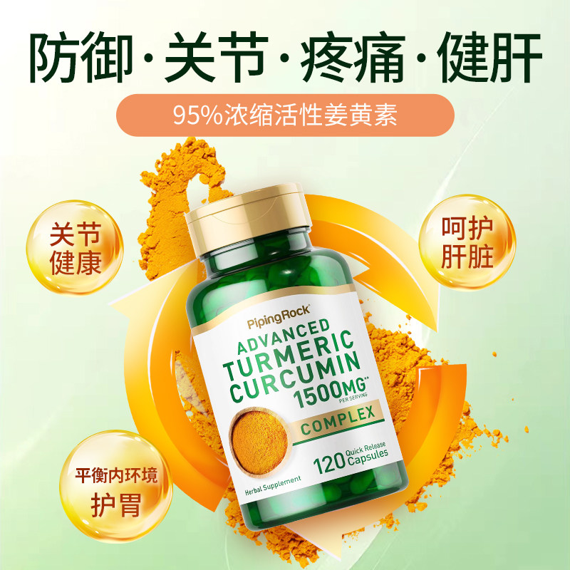 📚 B美国原装姜黄素turmeric1500mg黑胡椒精华胶囊 高含量姜黄粉胶囊