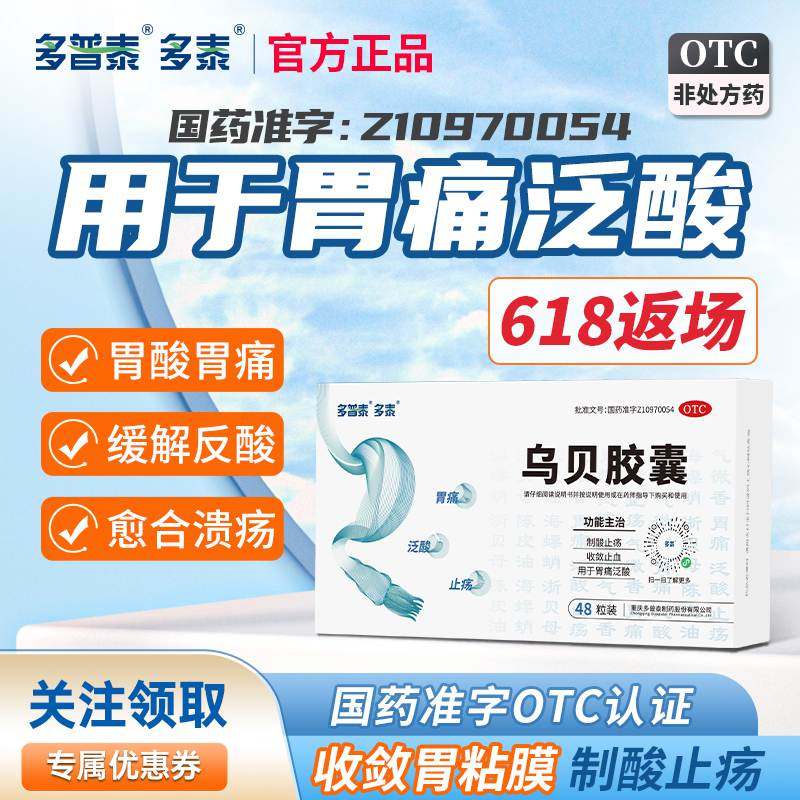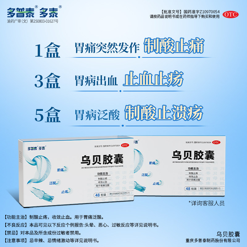 📚 多泰乌贝胶囊正品国药准字OTC胃酸过多制酸中药胃疼胃药胃痛的药
