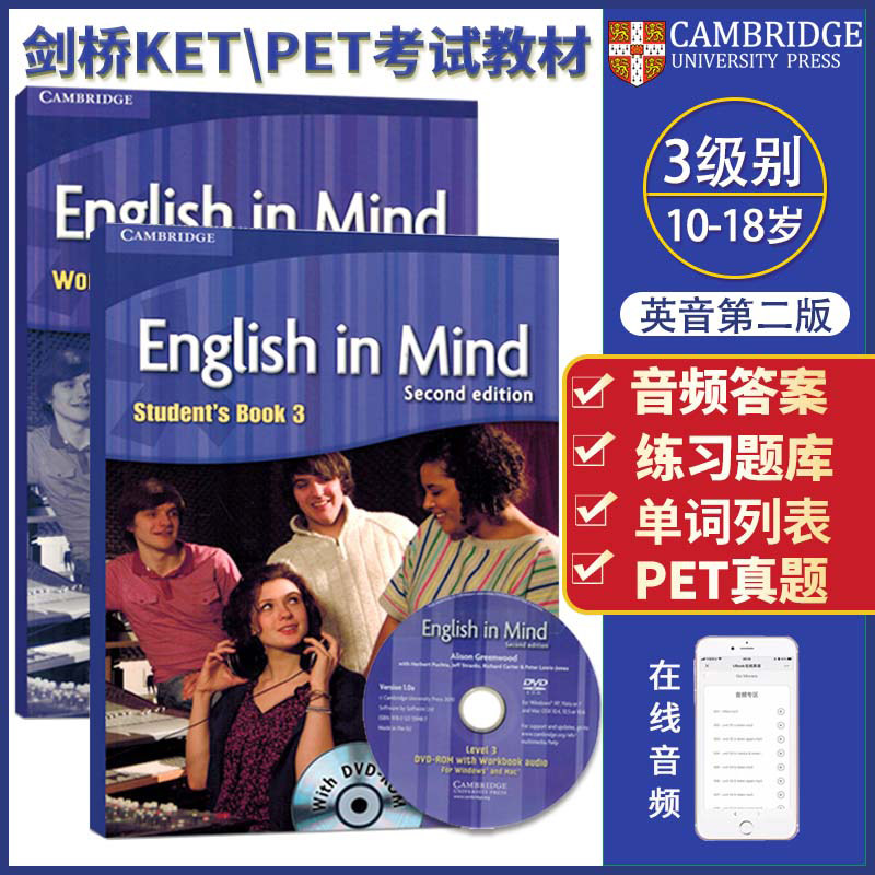 📚 English In Mind 3级 剑桥原版中学英语教材第二版英版学生用书带DVD-ROM剑桥KET/PET考试