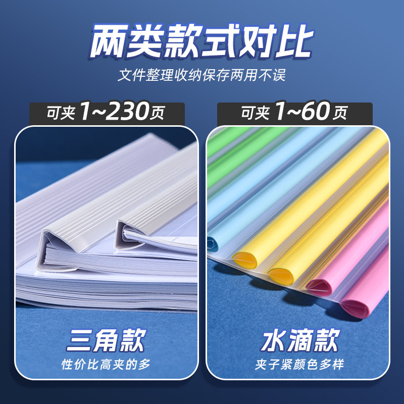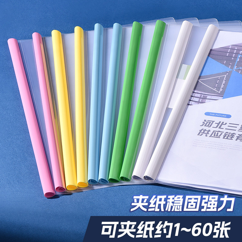 📚 彩色抽杆夹a4拉杆夹加厚透明竖版文件夹小学生专用资料试卷文件收纳夹办公活页夹三角装订夹装水滴杆夹条