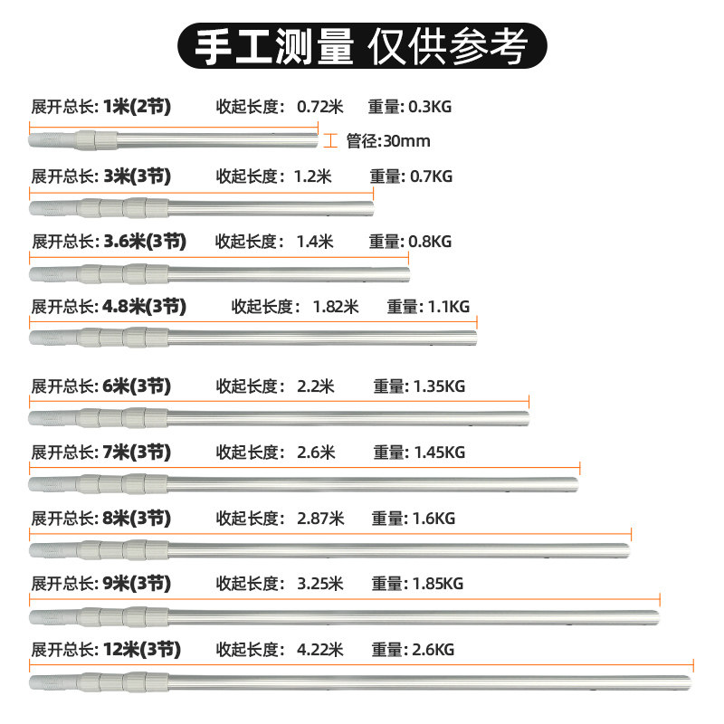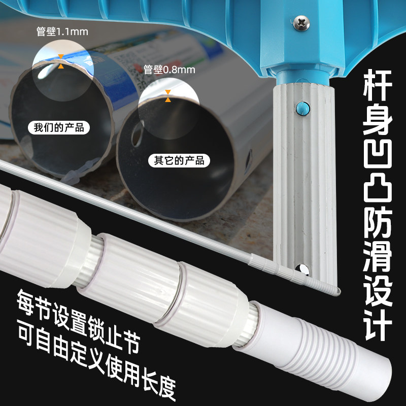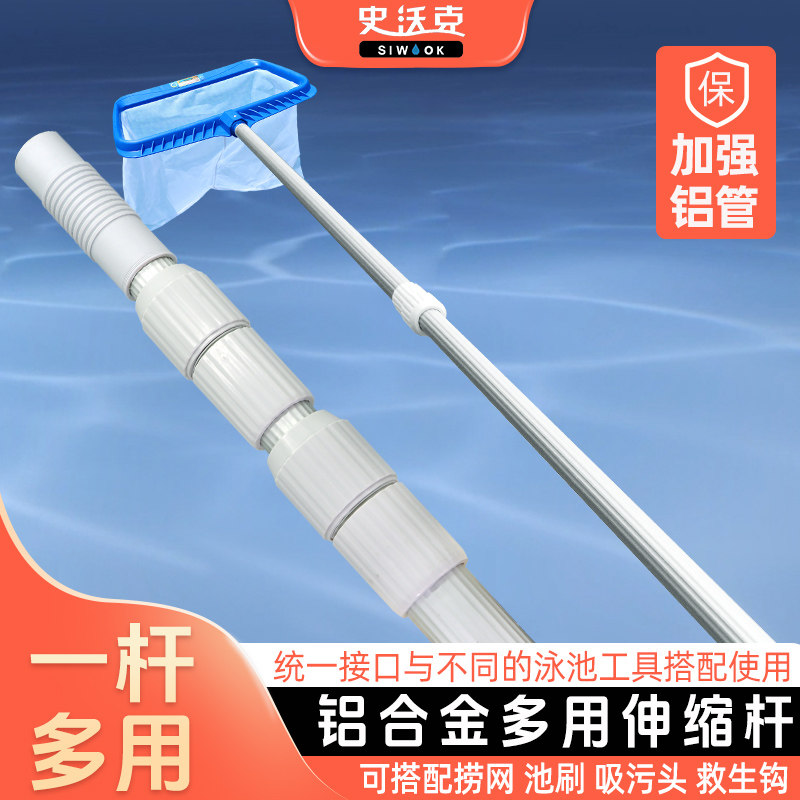📚 捞网伸缩杆配刷子吸污头盘救生钩打捞杆3/9米壁厚加厚泳池救生杆