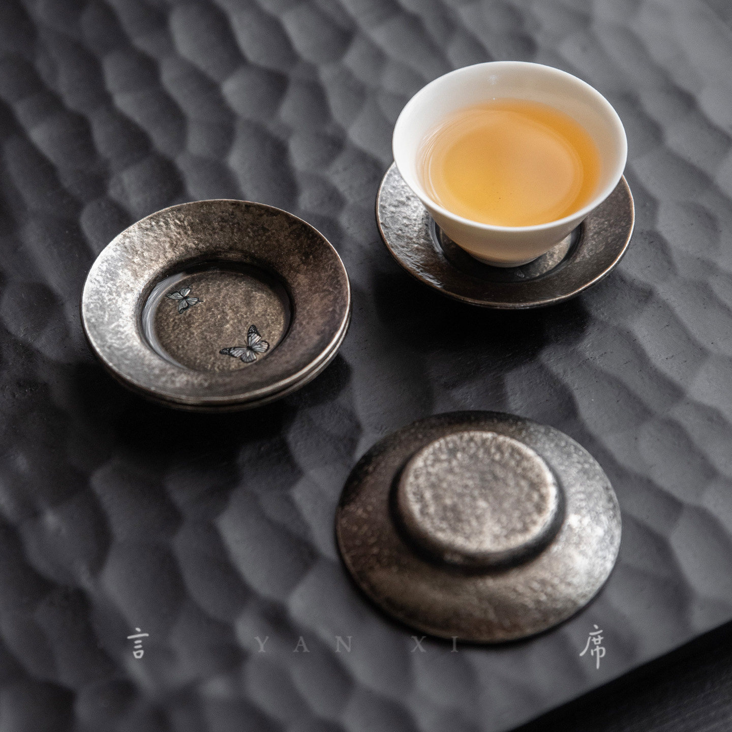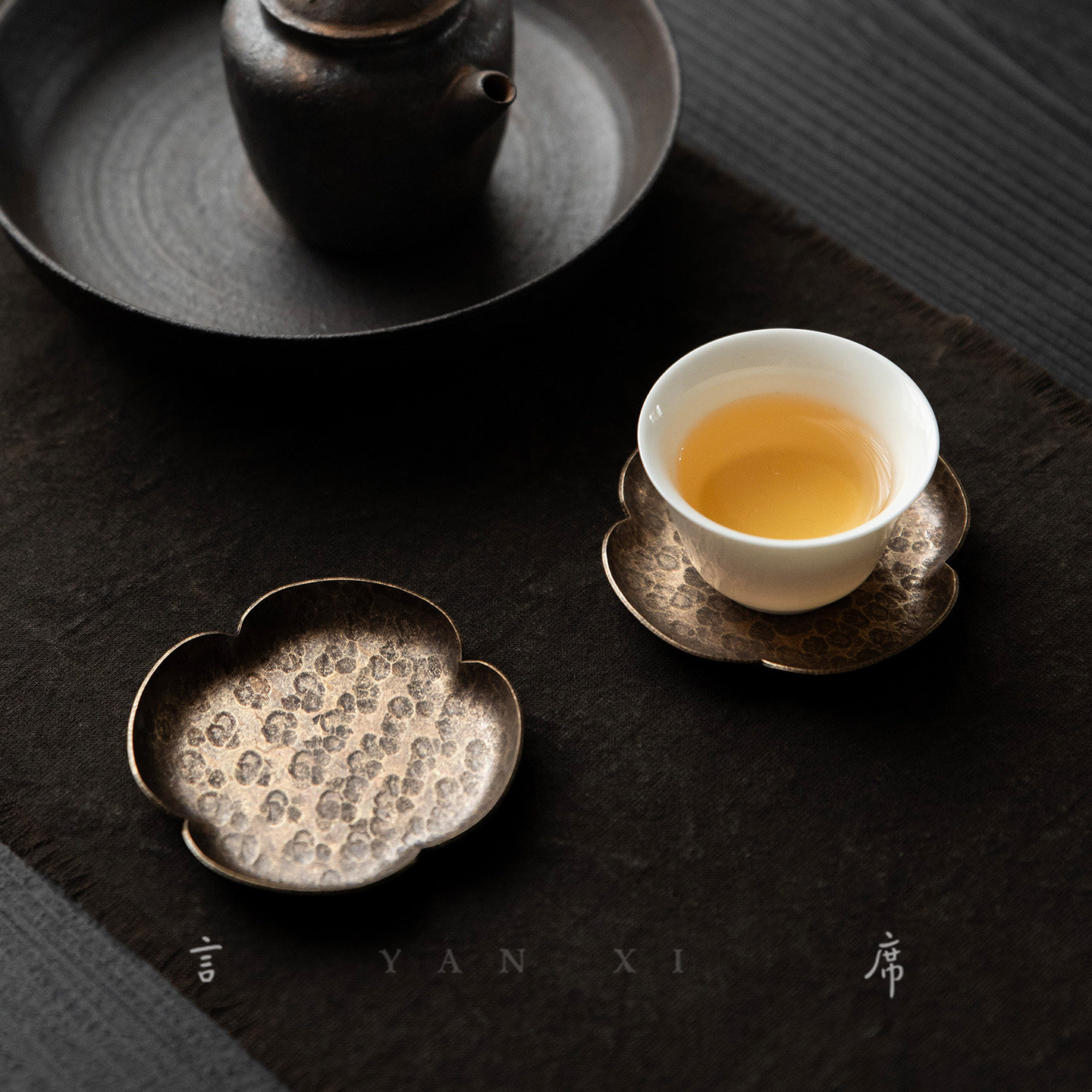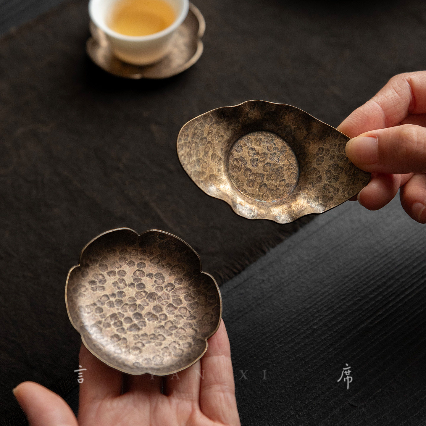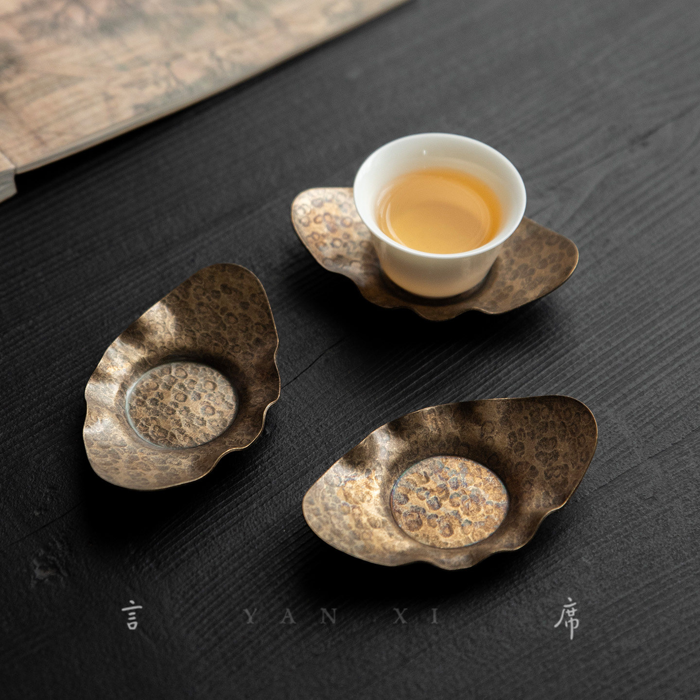 📚 禅意仿古合金黄铜杯垫元宝莲花圆形茶碟隔热蝴蝶杯托锤纹茶道零配