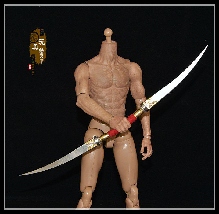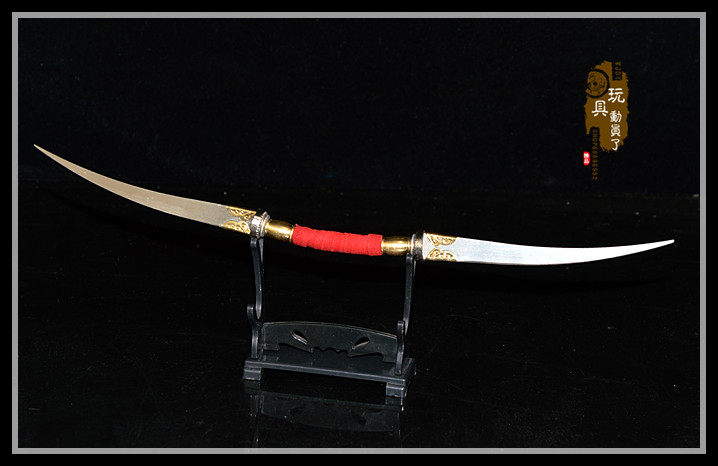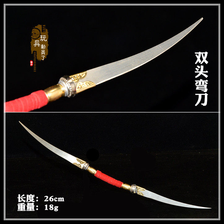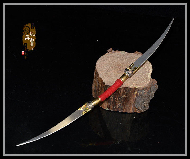 📚 1:6中国古代微缩冷兵器武器模型 双头月牙弯刀鸳鸯刀兵人场景配件
