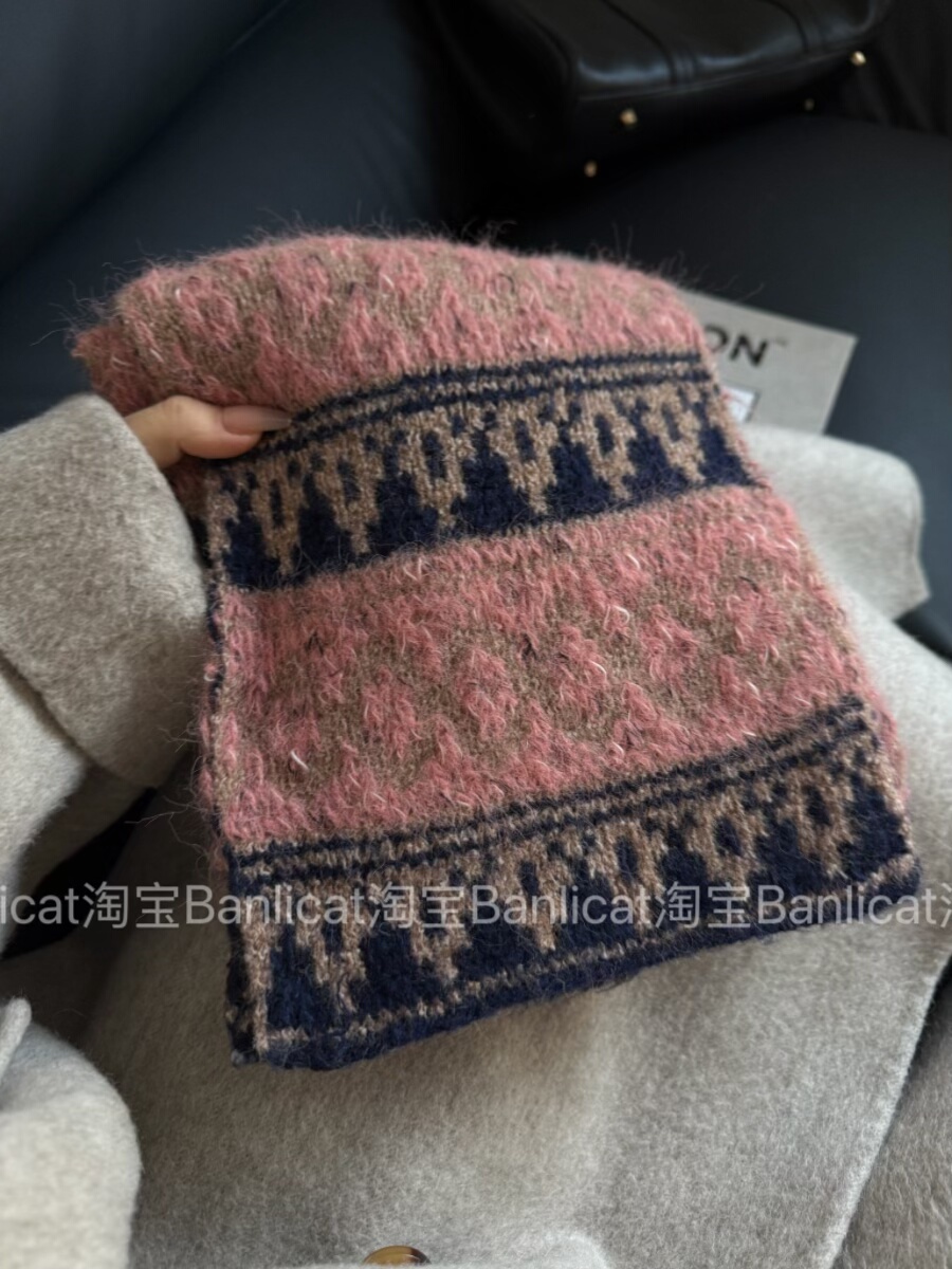 📚 谁懂这种粉色 显白又出片~韩版ins风费尔岛秋冬保暖围巾男女围脖
