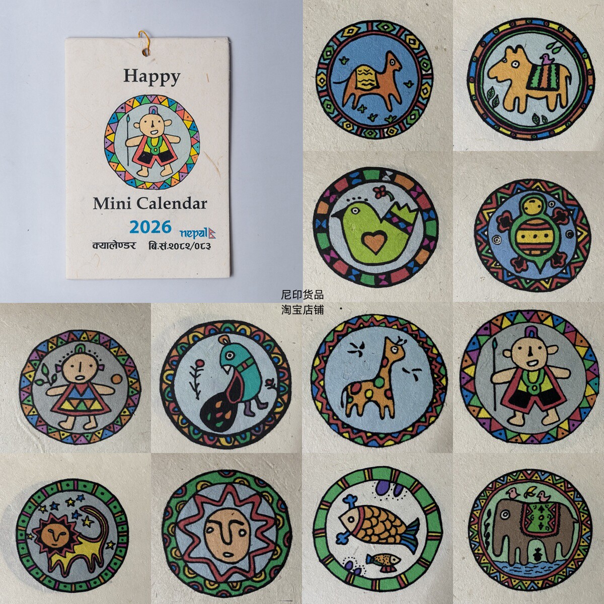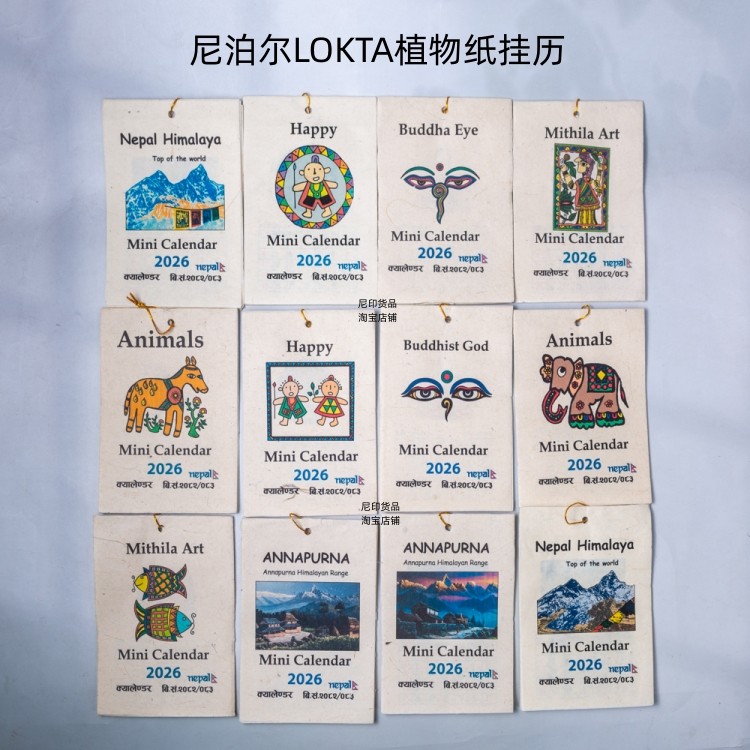 📚 尼泊尔手工Lokta植物手工纸挂历日历2026年