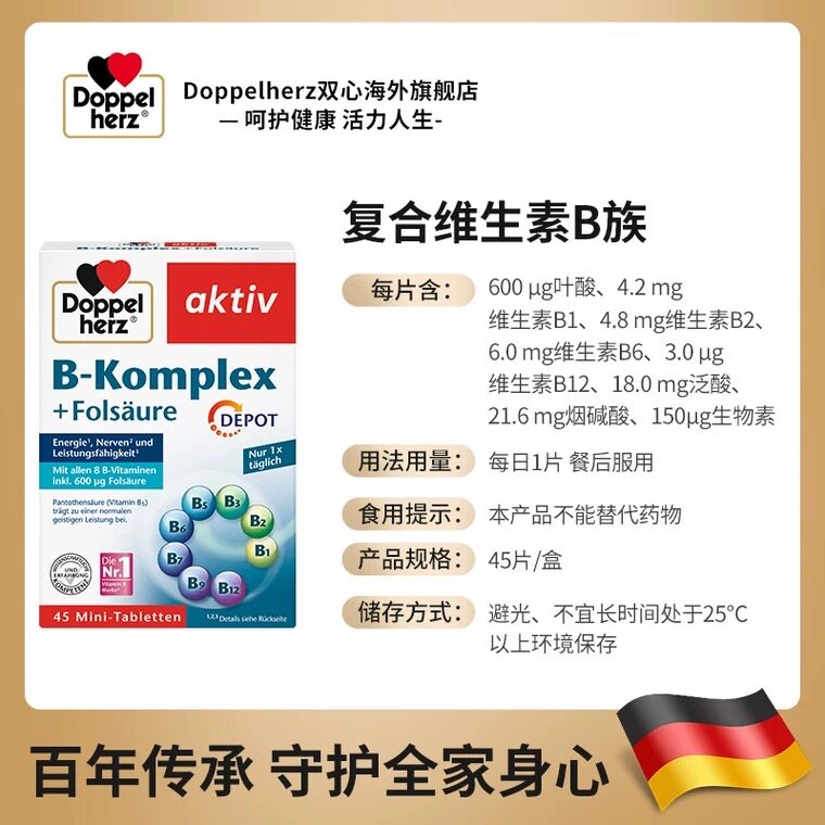 📚 德国双心维生素b族复合营养叶酸维生素片b1b6b12生物BVC提高代谢