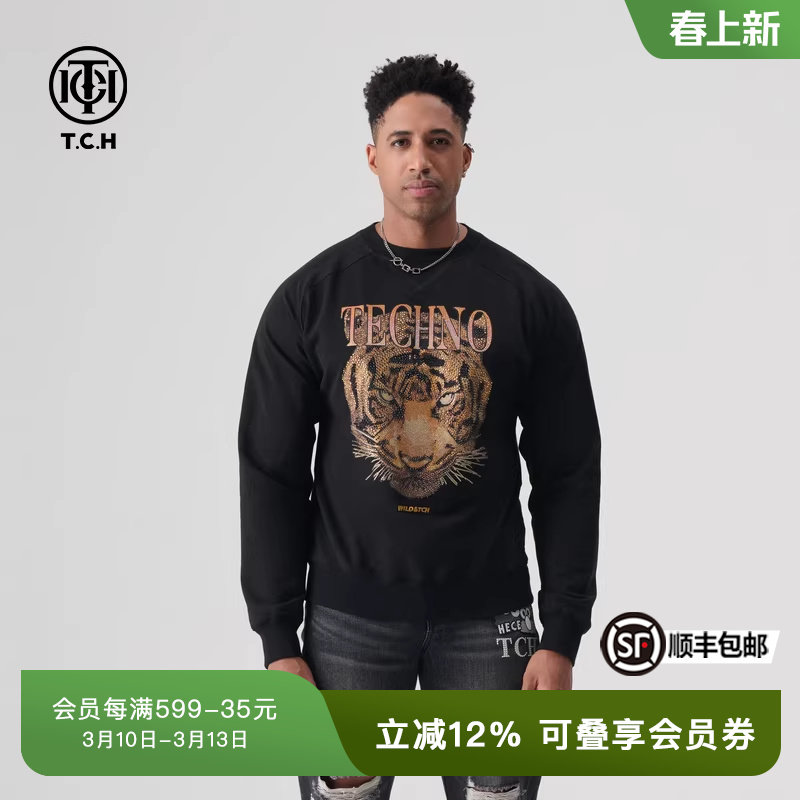📚 TCH轻奢春秋新款烫钻百搭圆领衫卫衣男女同款T72A116078