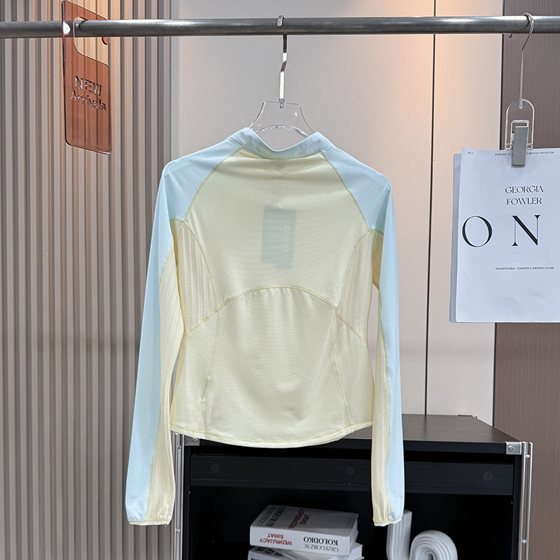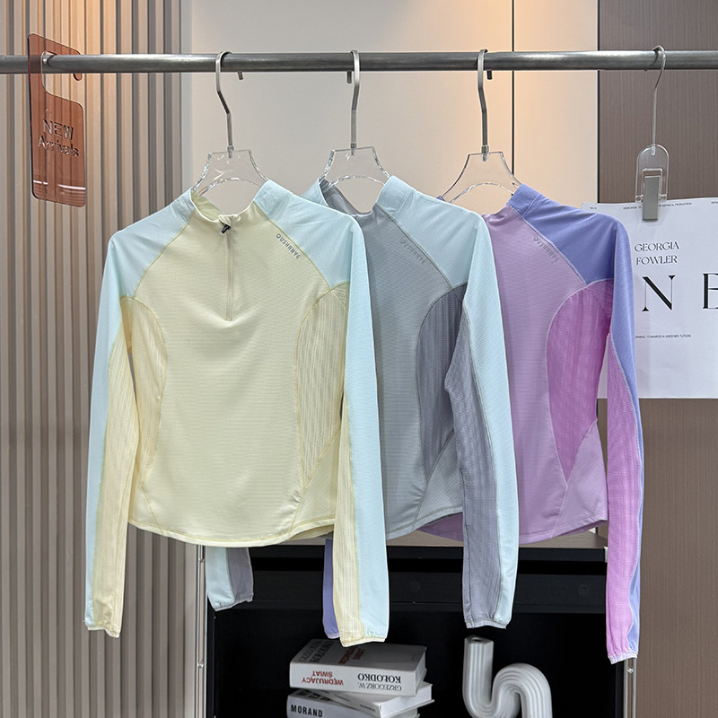 📚 大厂订单!户外吸湿透气速干撞色防晒骑行半拉链修身长袖T恤衫女