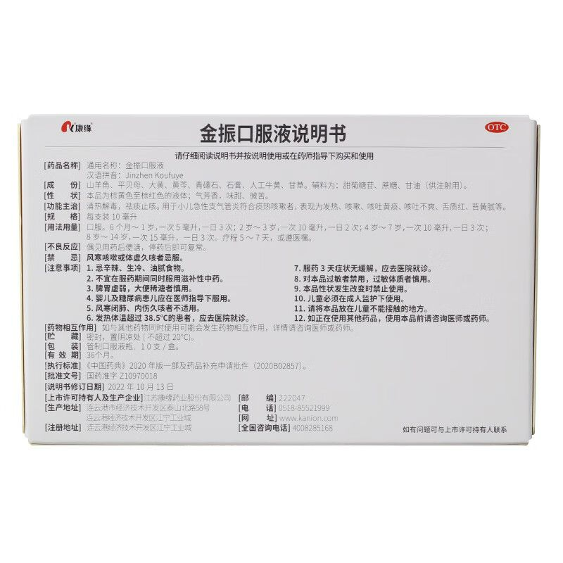 📚 康缘金振口服液10ml*10支 宝宝小儿咳嗽发热清热解毒祛痰止咳化痰