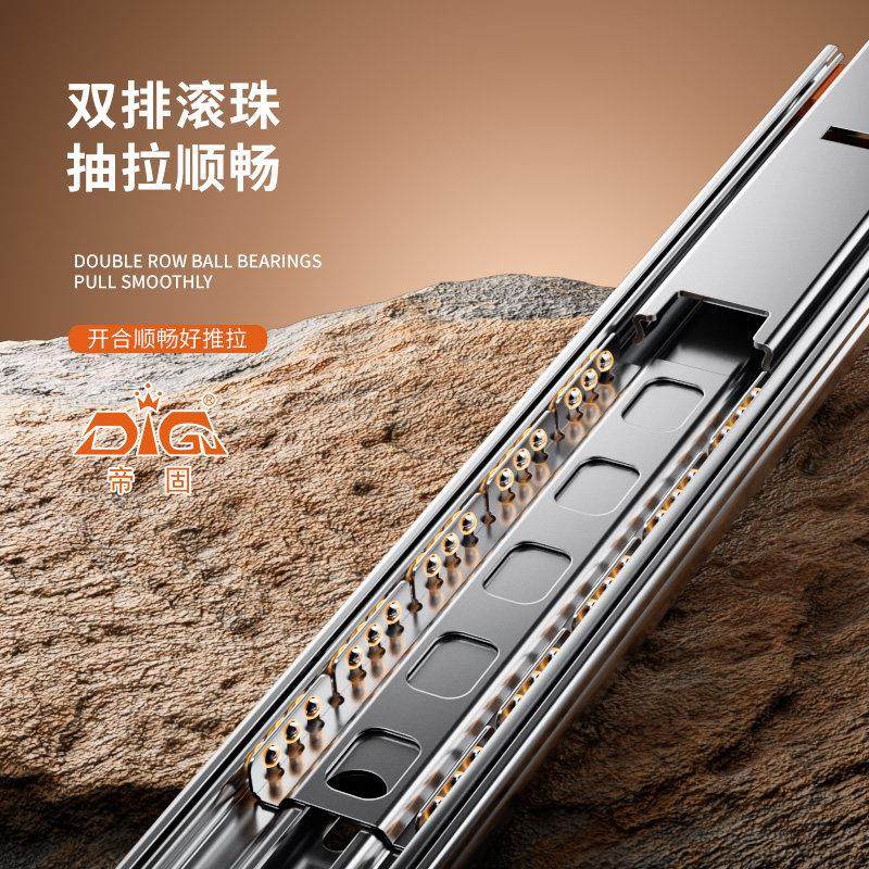 📚 加厚工业重型抽屉滑轨阻尼缓冲静音反弹三节侧装滚珠承重防水导轨