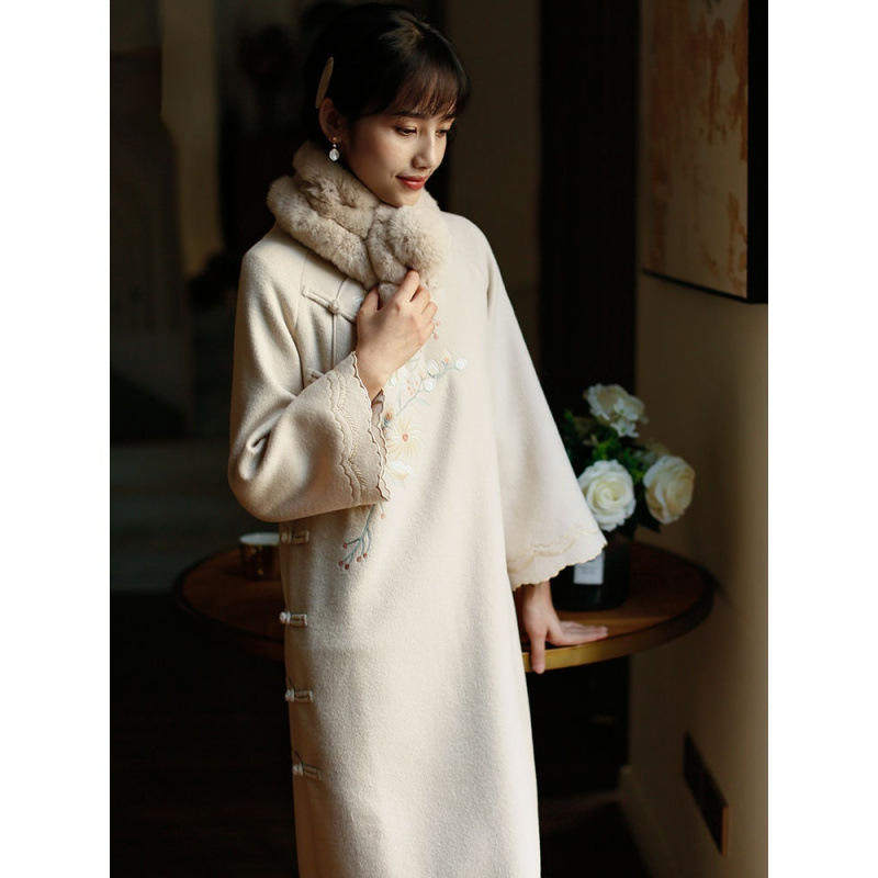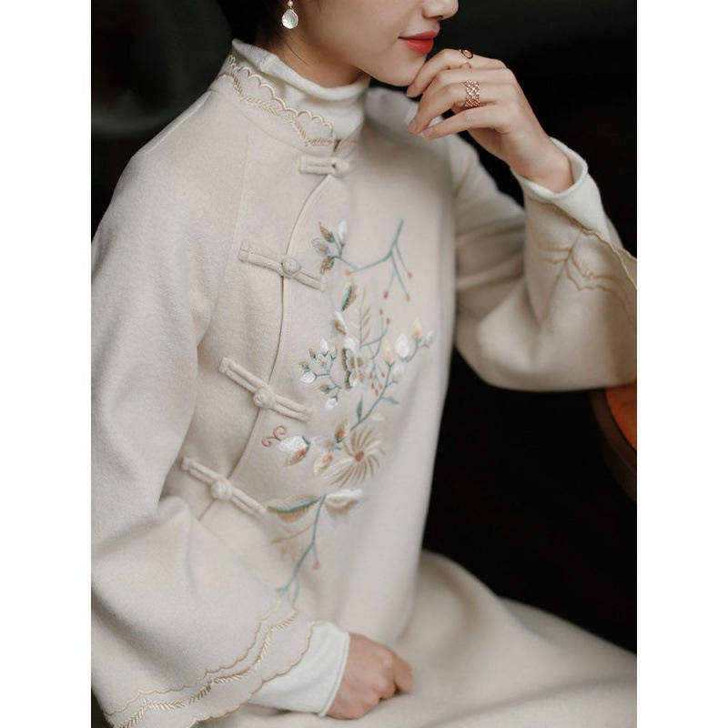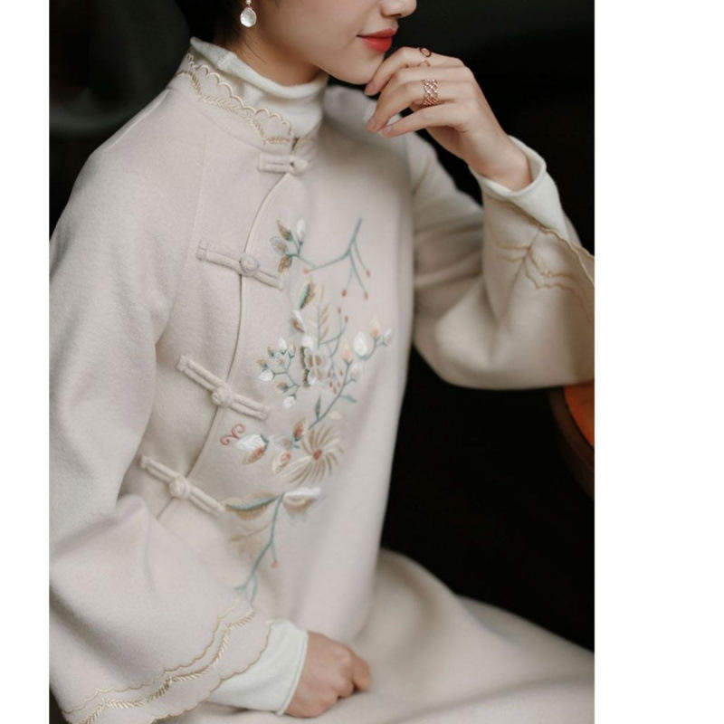 📚 改良版旗袍冬季款毛呢少女时尚中国风旗袍式连衣裙气质长款女