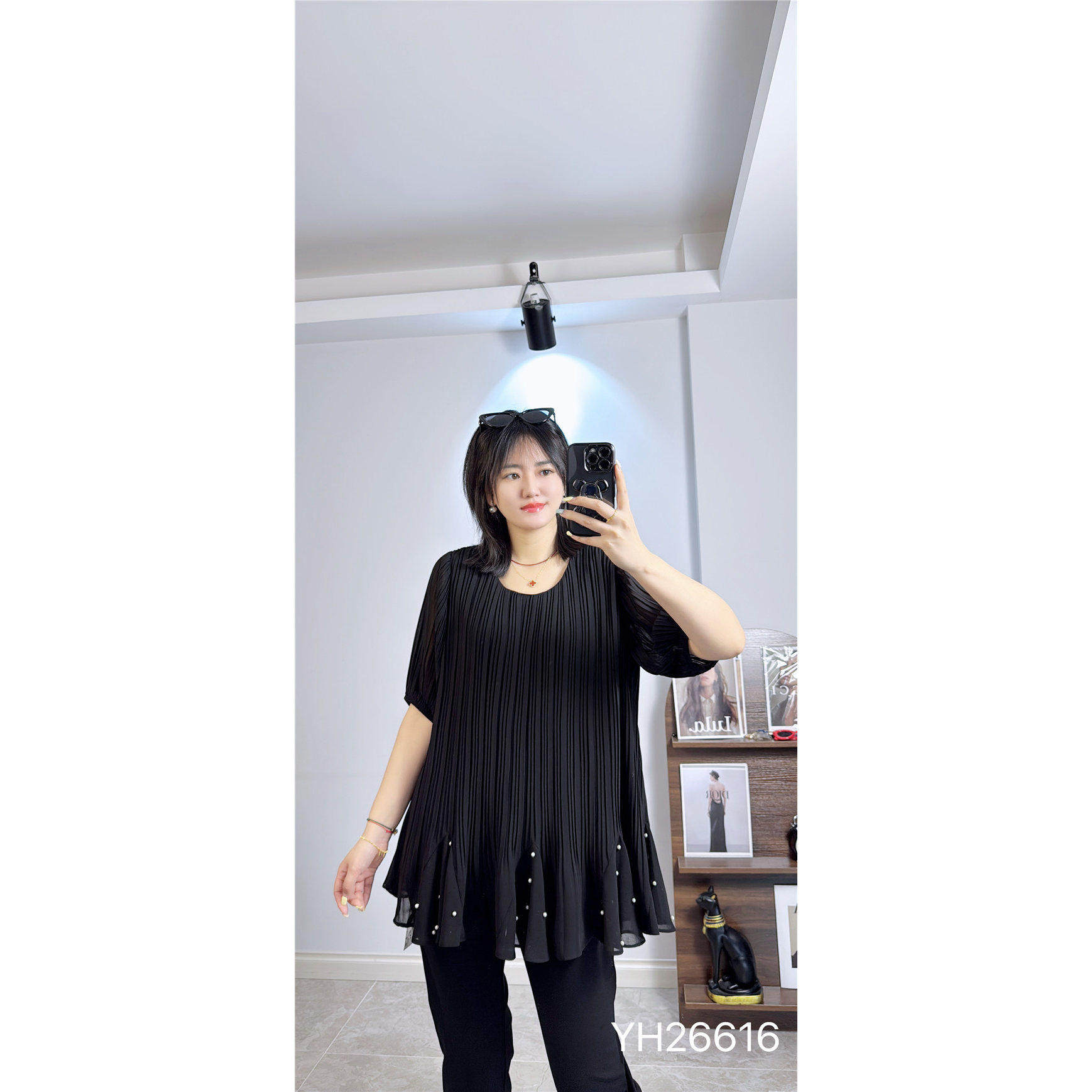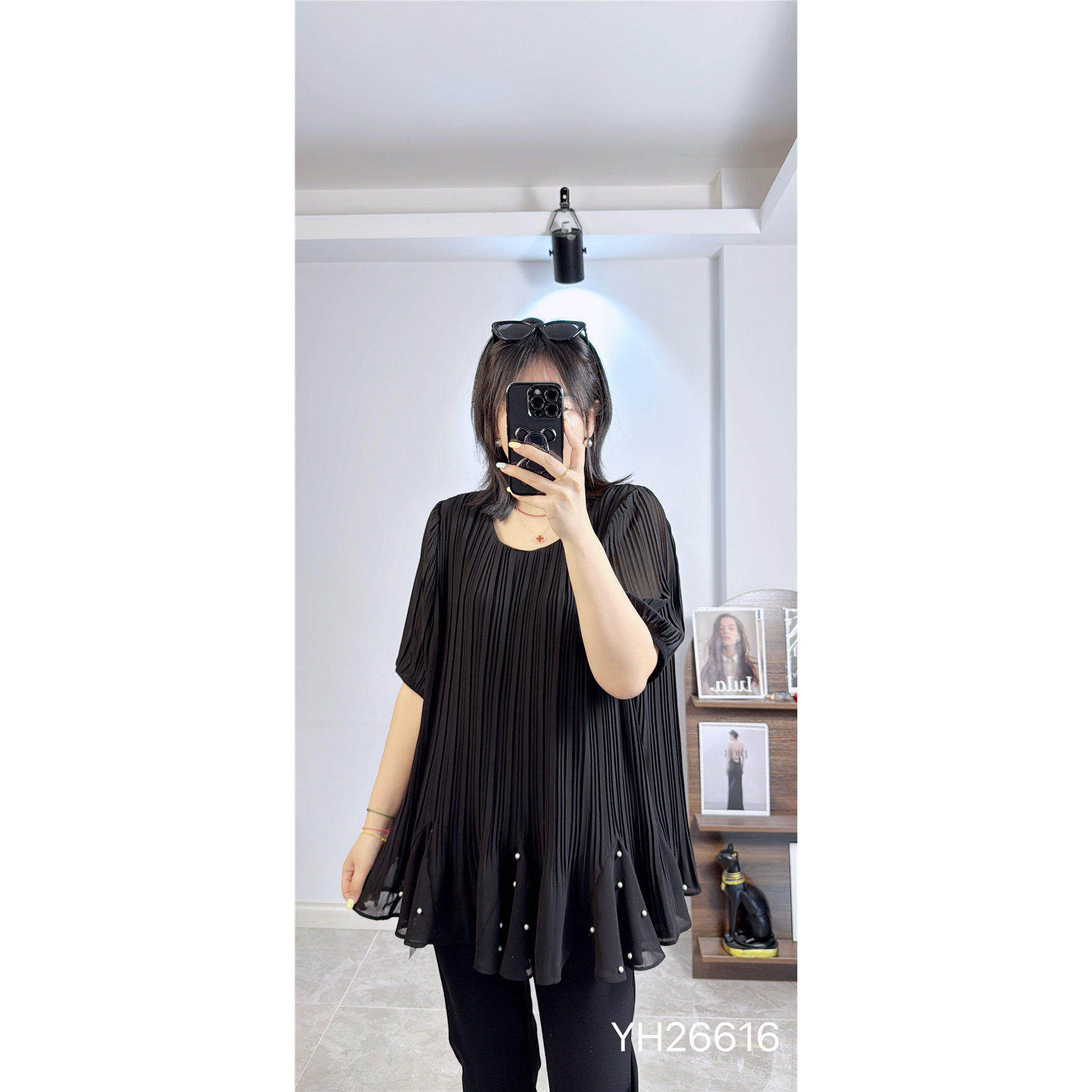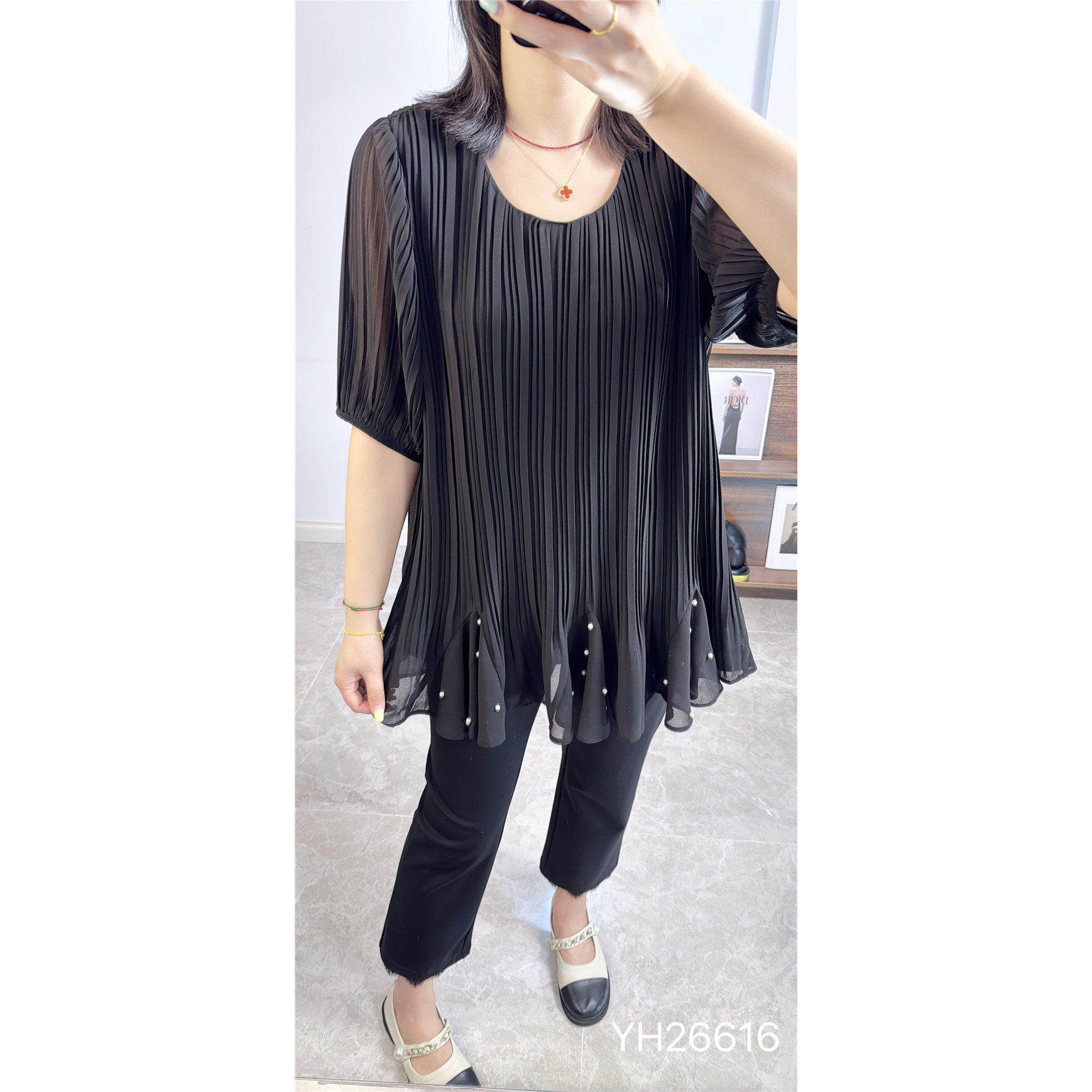 📚 26616香港芸卉2026夏季新款大码女装显瘦上衣短袖T恤遮肉雪纺小衫