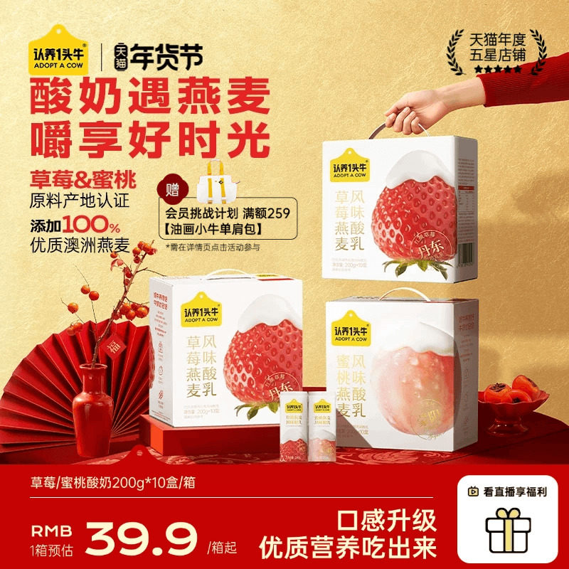 📚 【配方升级】认养一头牛酸奶蜜桃红颜草莓燕麦酸奶礼盒送礼10月产