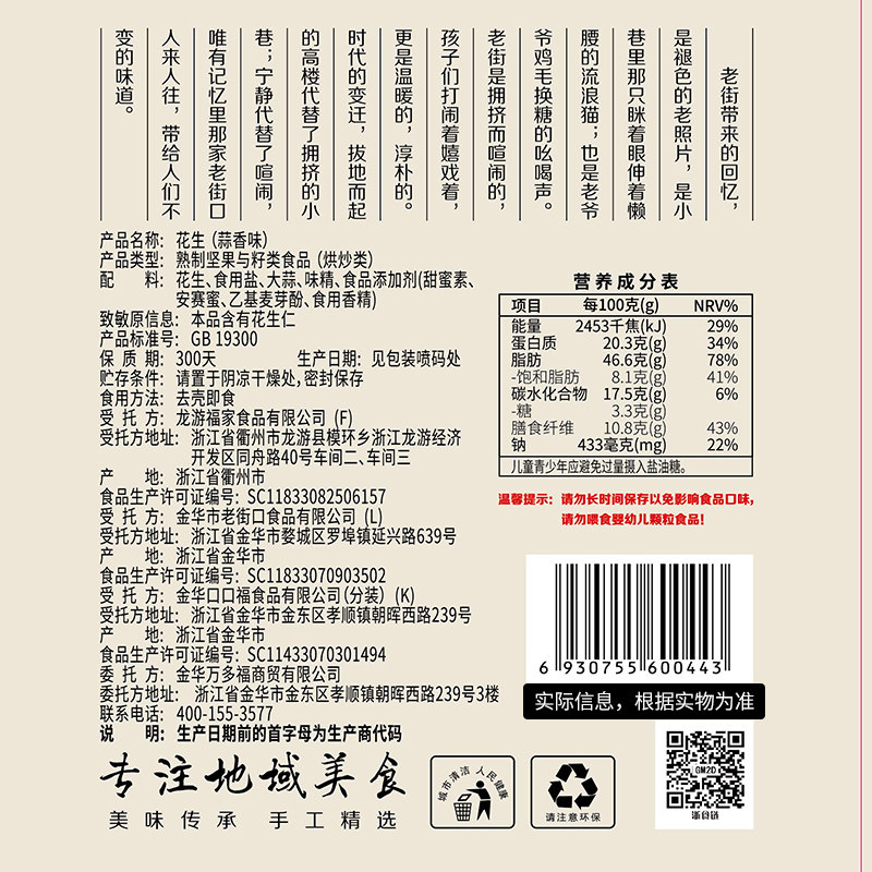 📚 老街口蒜香花生坚果炒货休闲零食下酒菜小吃带壳花生宵夜年货新货