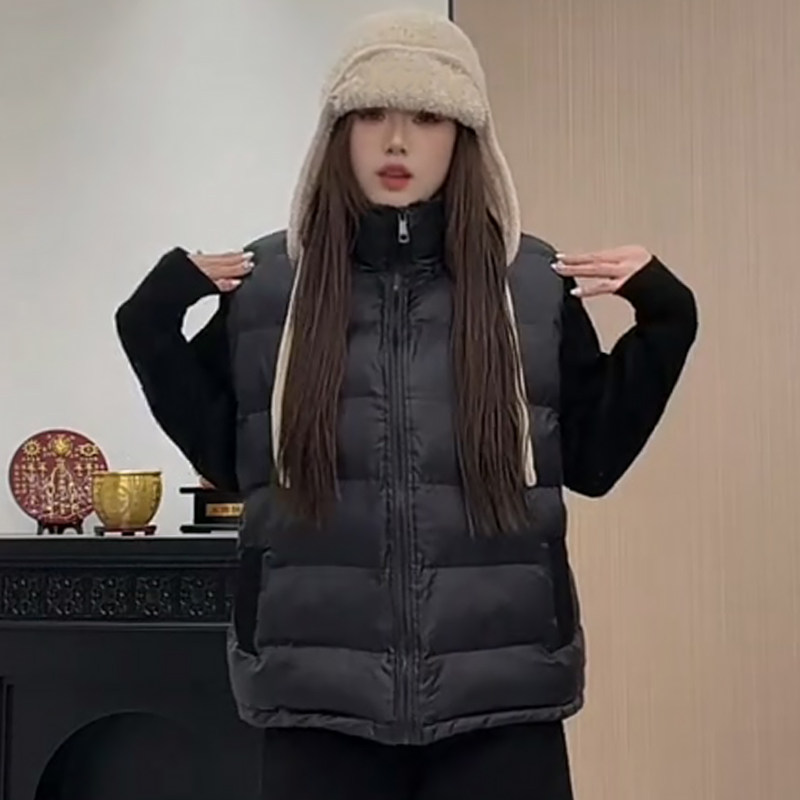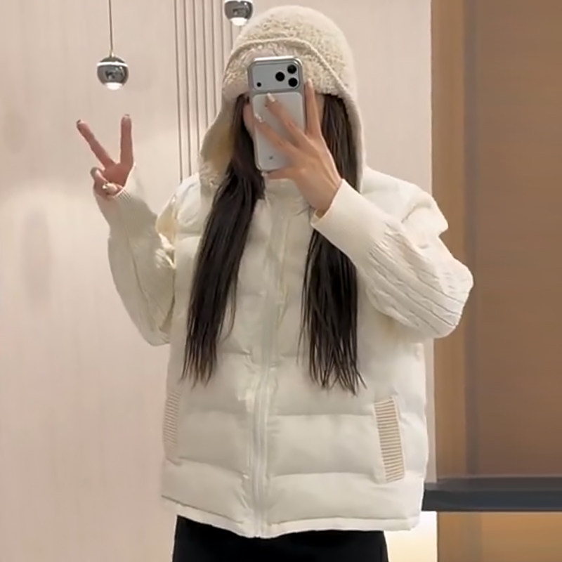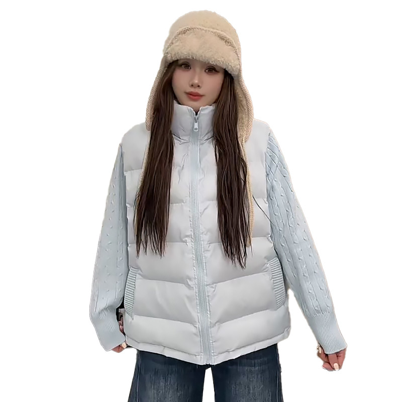 📚 针织袖拼接立领棉服女简约外套胖mm2025冬季新款宽松显瘦大码女装