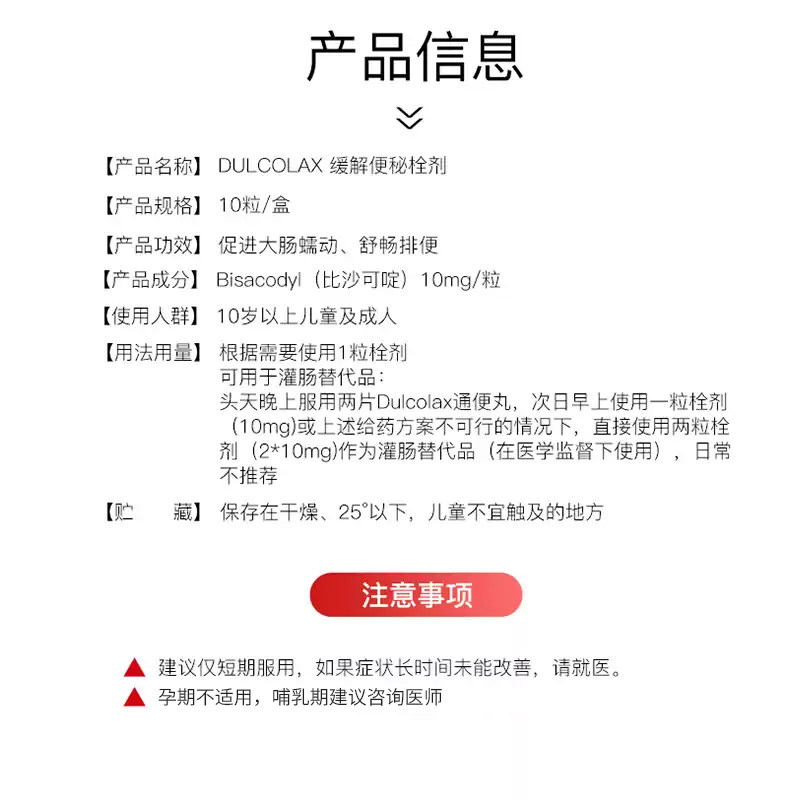 📚 德国DULCOLAX乐可舒通便栓剂比沙可啶开塞露清肠通便宿便便秘10粒